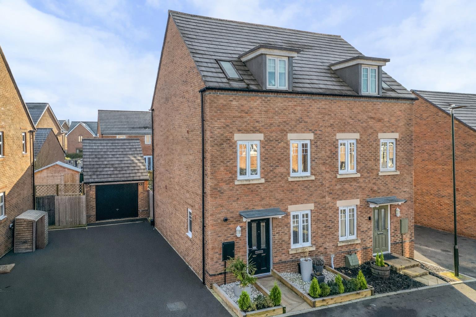 A stunning three storey home that is presented beautifully throughout with versatile accommodation over three floors. David Wilson Homes (The Greenwood design). Parking to the side for two cars up to a good sized single garage with gate to the garden. Entrance hall, downstairs cloakroom, utility cupboard, home office/playroom. A lovely fitted kitchen with integral appliances opening to a lovely dining family room with French doors opening to the garden. A great understairs pantry. First floor sitting room or further (4th Bedroom) bedroom. Master bedroom with wall to wall fitted wardrobes and a lovely en-suite shower room. To the second floor two further double bedrooms and a family bathroom. Enclosed by a landscaped garden, paved sun terrace opening to artificial lawn and steps with raised beds and a decked sun terrace. Throughout the garden lights inset provide perfect space for Alfresco dining. Conveniently close to local amenities, schools, and transport links, ensuring that everything you need is within easy reach. This house is not just a place to live; it is a place to call home. With its modern design and thoughtful layout, it presents a wonderful opportunity for anyone looking to enjoy a comfortable and stylish lifestyle. Don’t miss the chance to make this exceptional property your own.