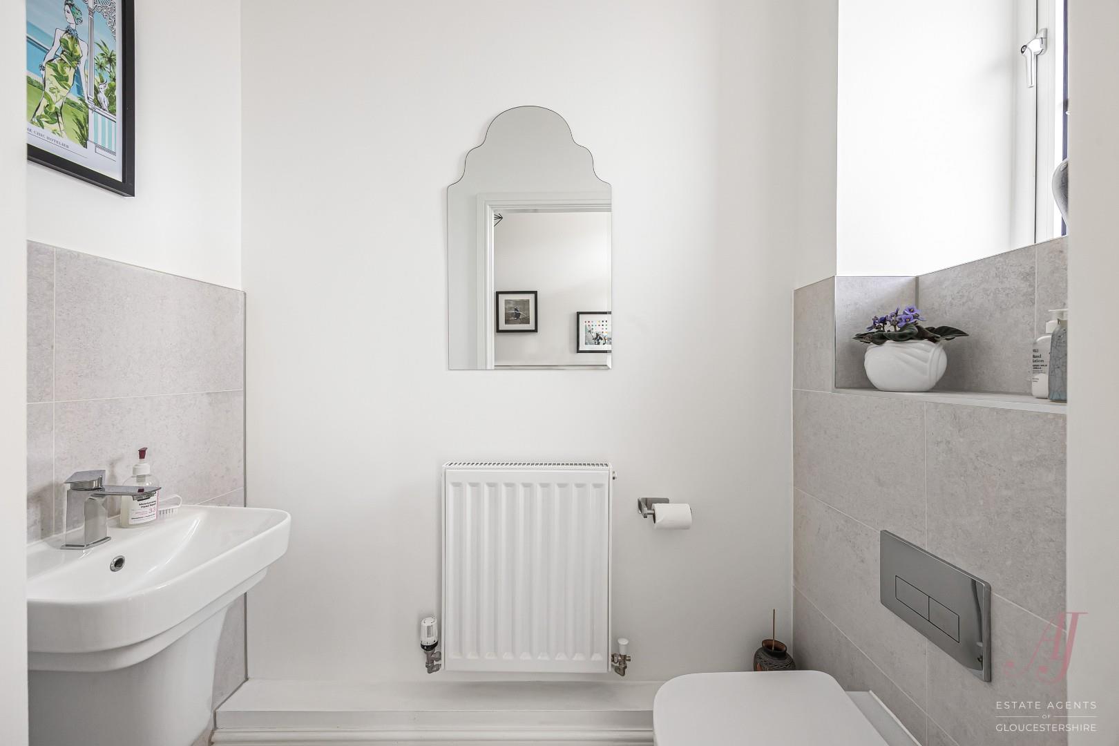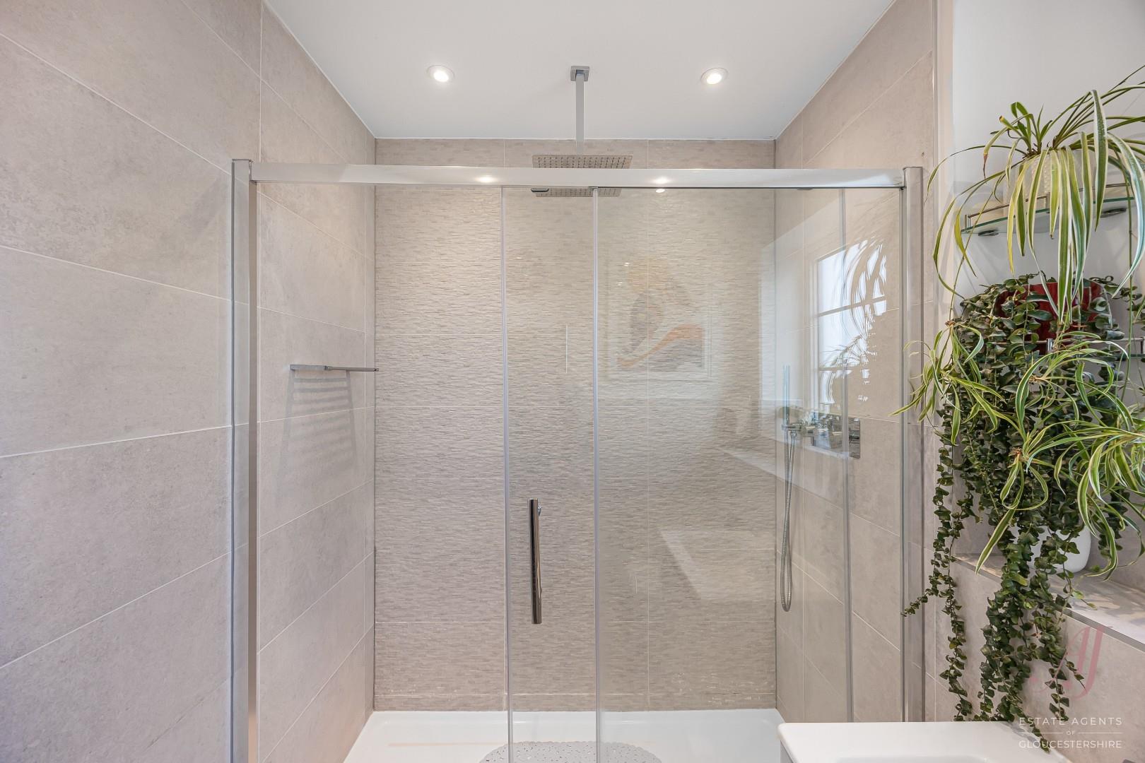 - Contemporary shower room with double shower enclosure, and downstairs cloakroom.