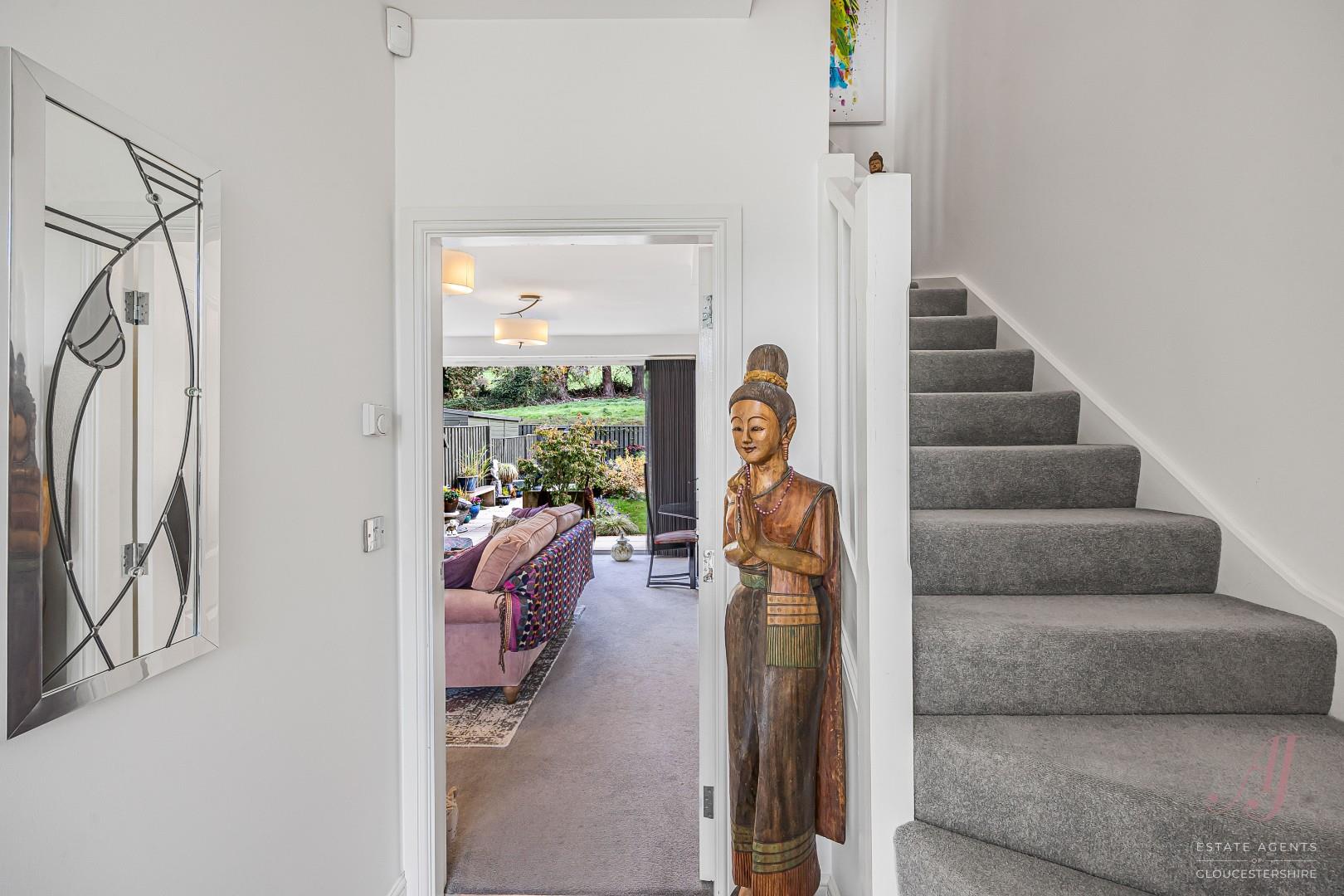 Set within 32 acres of beautifully maintained private parkland, this modern three-bedroom home offers peace, space, and a strong sense of community. Surrounded by mature trees and open green spaces, the setting feels calm and natural, with views stretching toward the Forest of Dean, the Malvern Hills, and across the Severn. The property includes parking for two cars, a landscaped garden, and stylish open-plan living. The ground floor features a bright kitchen with breakfast bar, integrated appliances, and bi-fold doors opening onto the terrace and garden. Upstairs are three light-filled bedrooms and a modern shower room. Residents of Green Walk share access to extensive grounds, walking routes, and regular community events. The home blends the charm of a period parkland setting with the comfort and convenience of modern design, offering a welcoming and well-connected lifestyle.