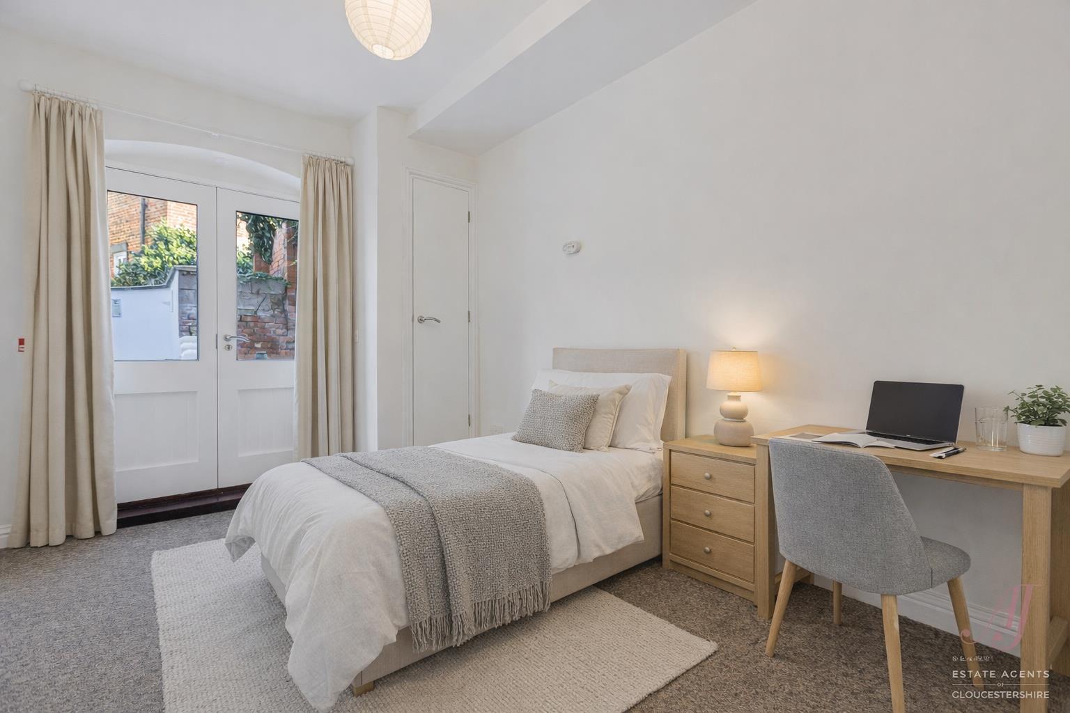 French doors with embedded windows that bring in plenty of natural light. There is comfortable space for not just a bed but also a perfect work from home space or alternatively a great guest room. We feel this room could offer the perfect opportunity to work from home benefiting from a direct access from outside. An enclosed cupboard houses the combi boiler.