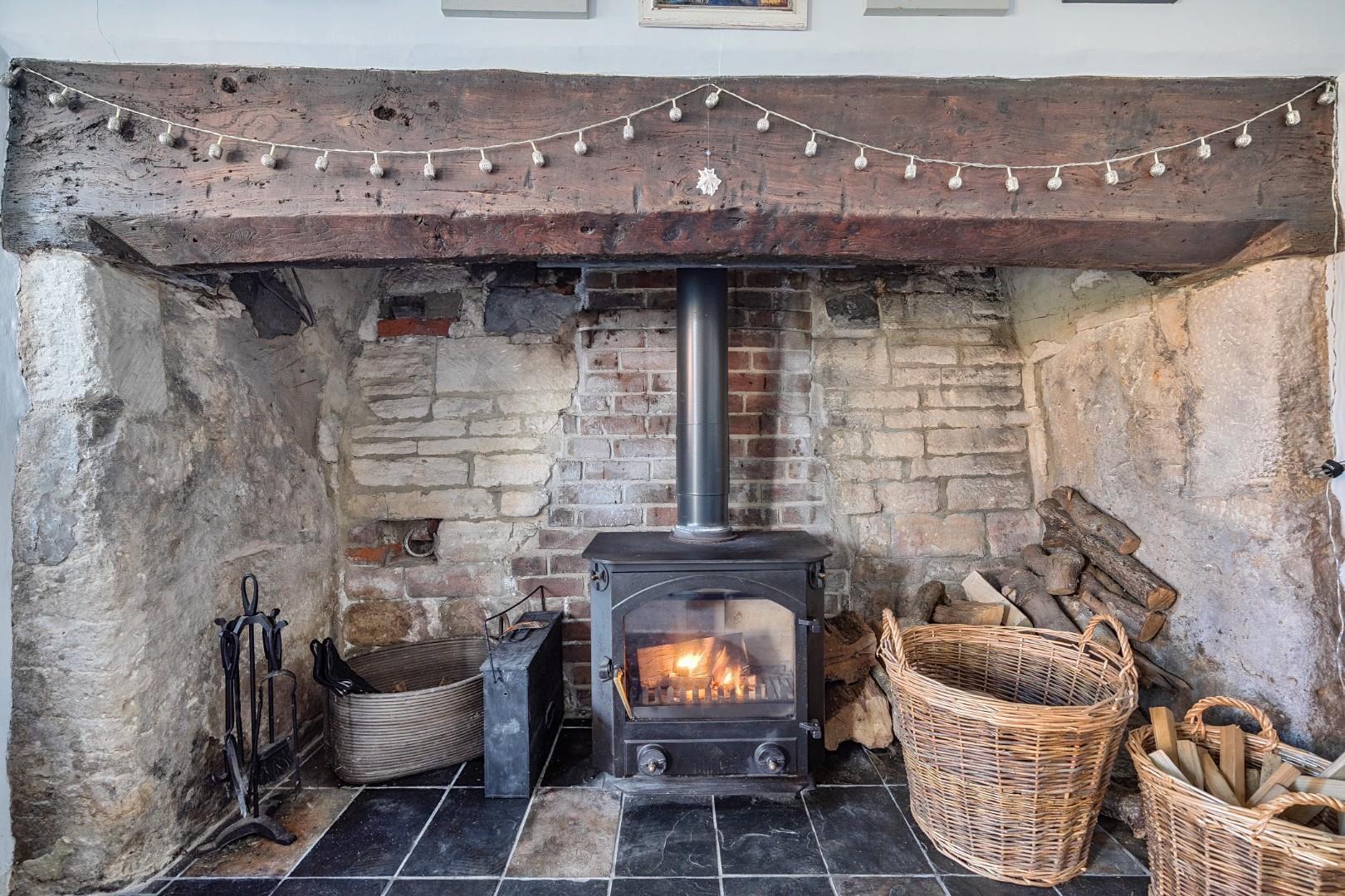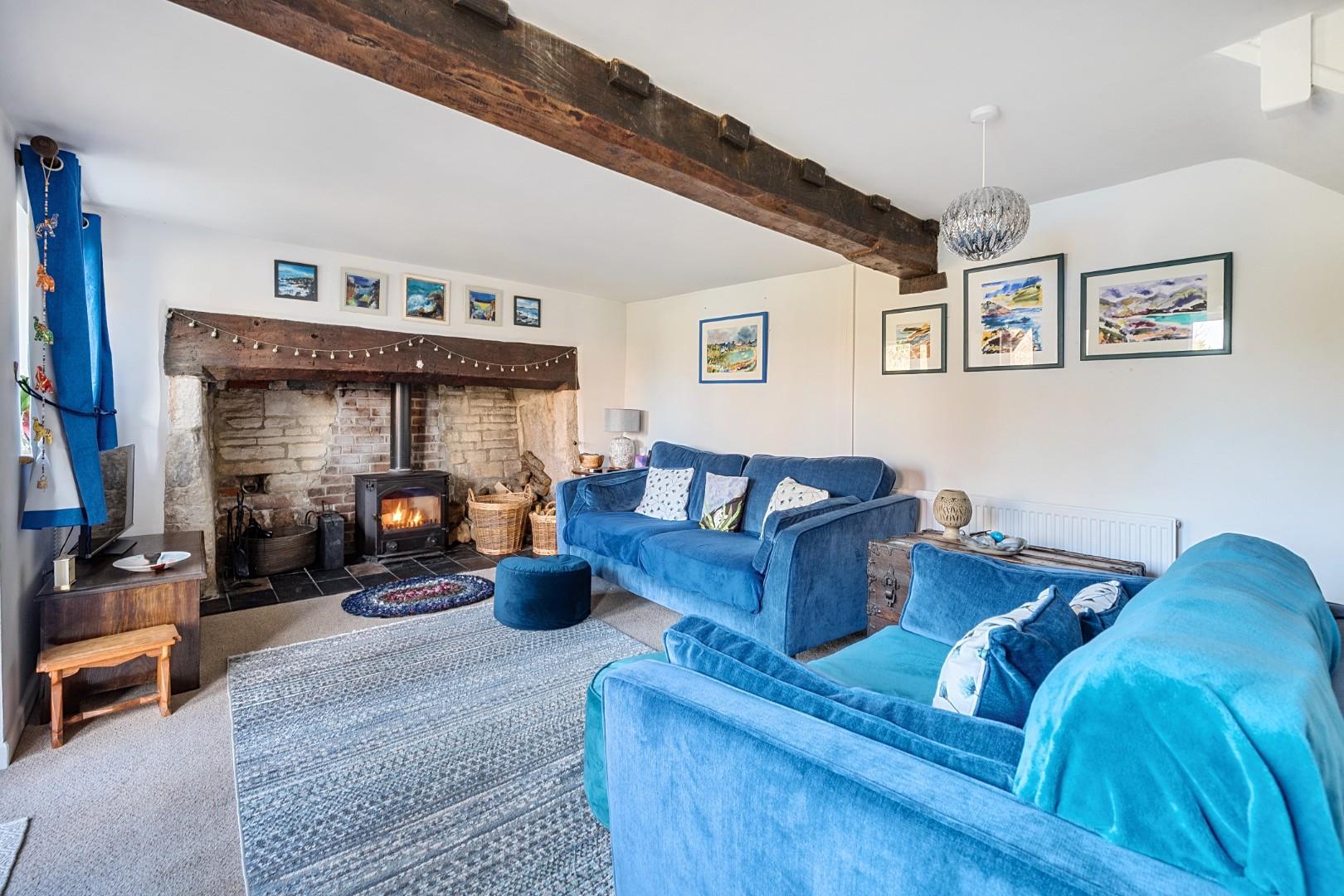 - Sitting room featuring a striking inglenook fireplace, log burner & exposed beams.
