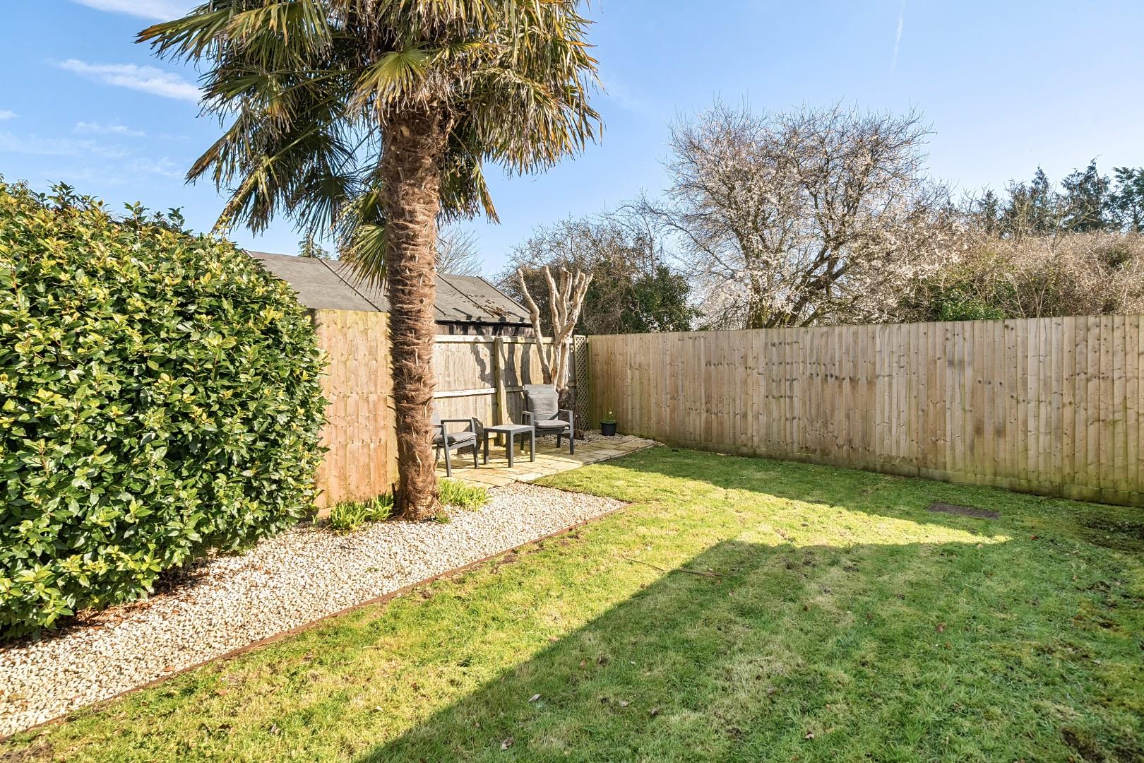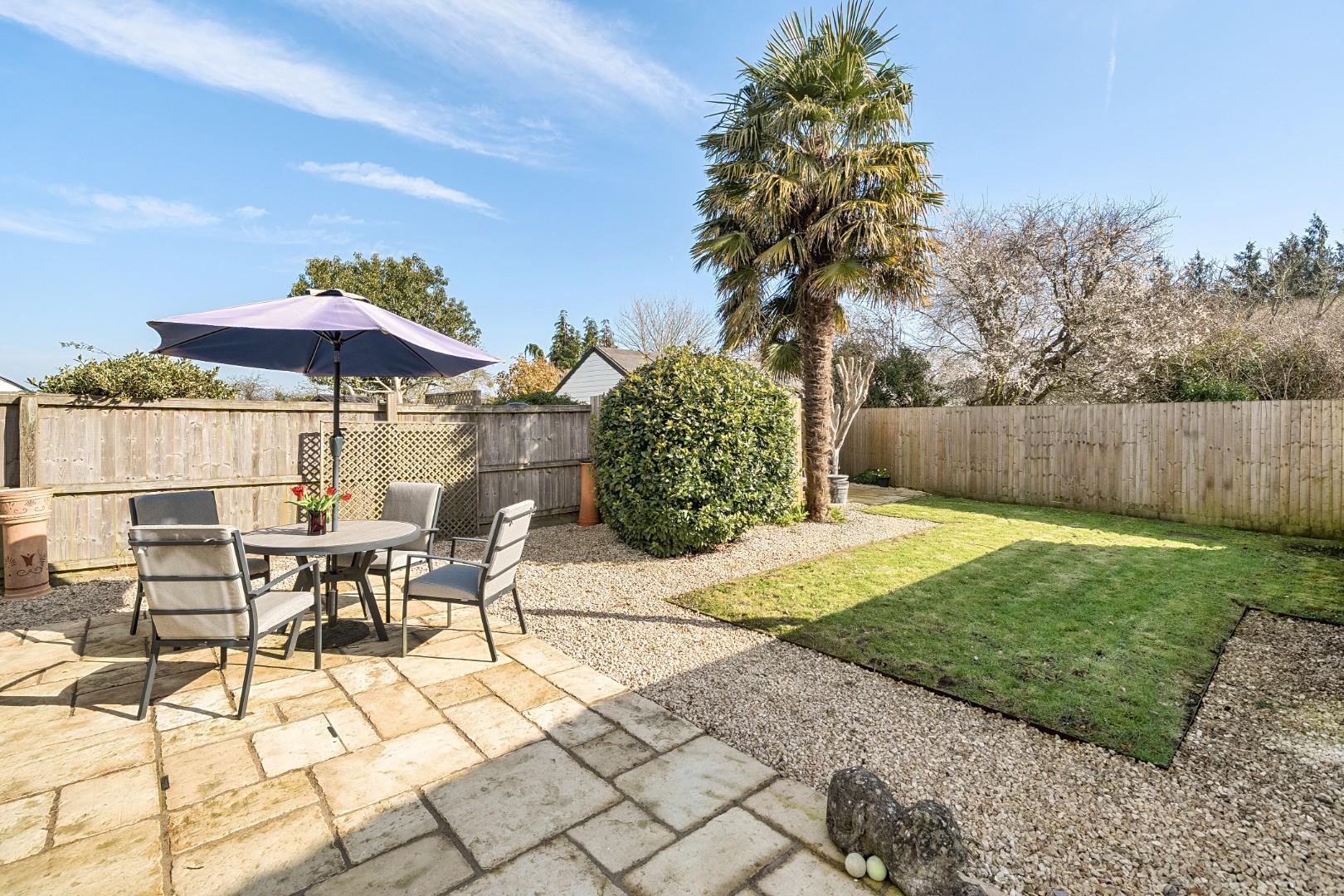 A secluded sun terrace outside the garden room with a range of shrubs and mature hedging and a lovely Mediterranean-palm. This connects beautifully with the garden room and kitchen providing perfect ease for Alfresco dining through the summer. A further paved terrace to the corner provides further seating area.