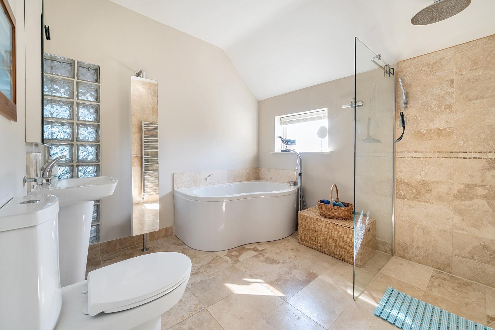 - Four-piece family bathroom with freestanding bath & separate walk-in shower.