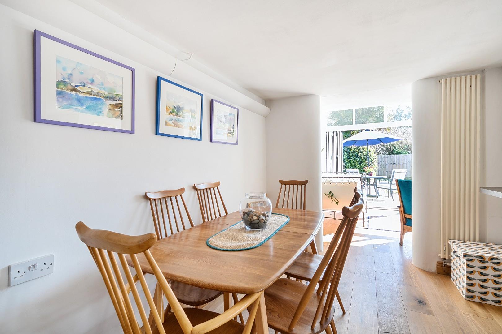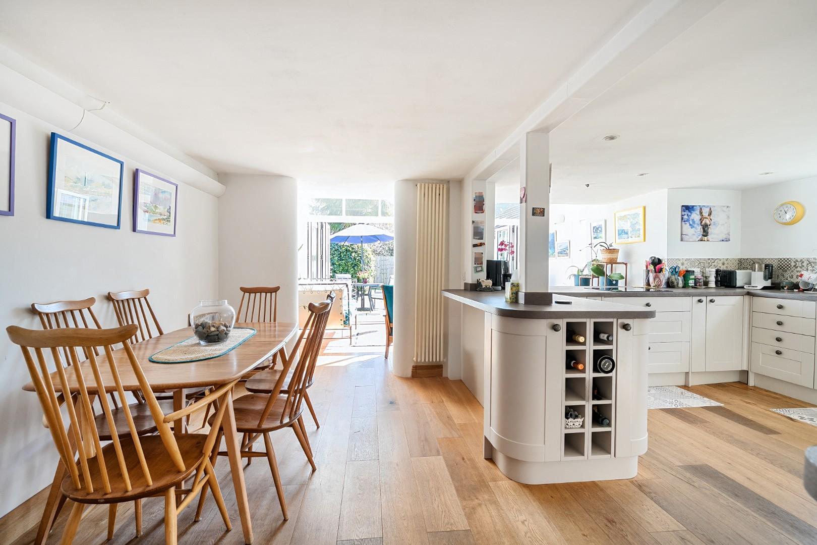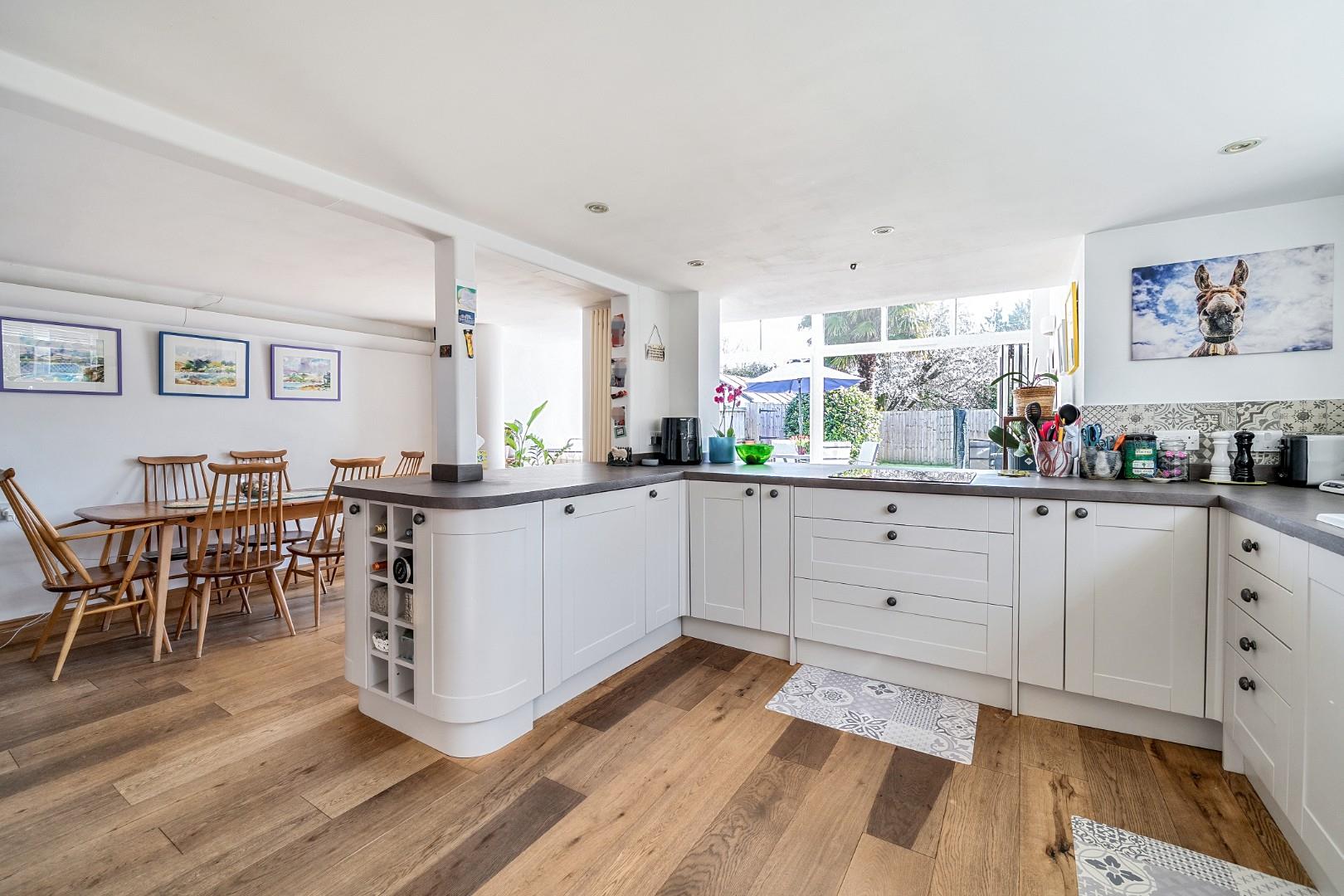 - Contemporary shaker-style kitchen, open-plan flow to dining area