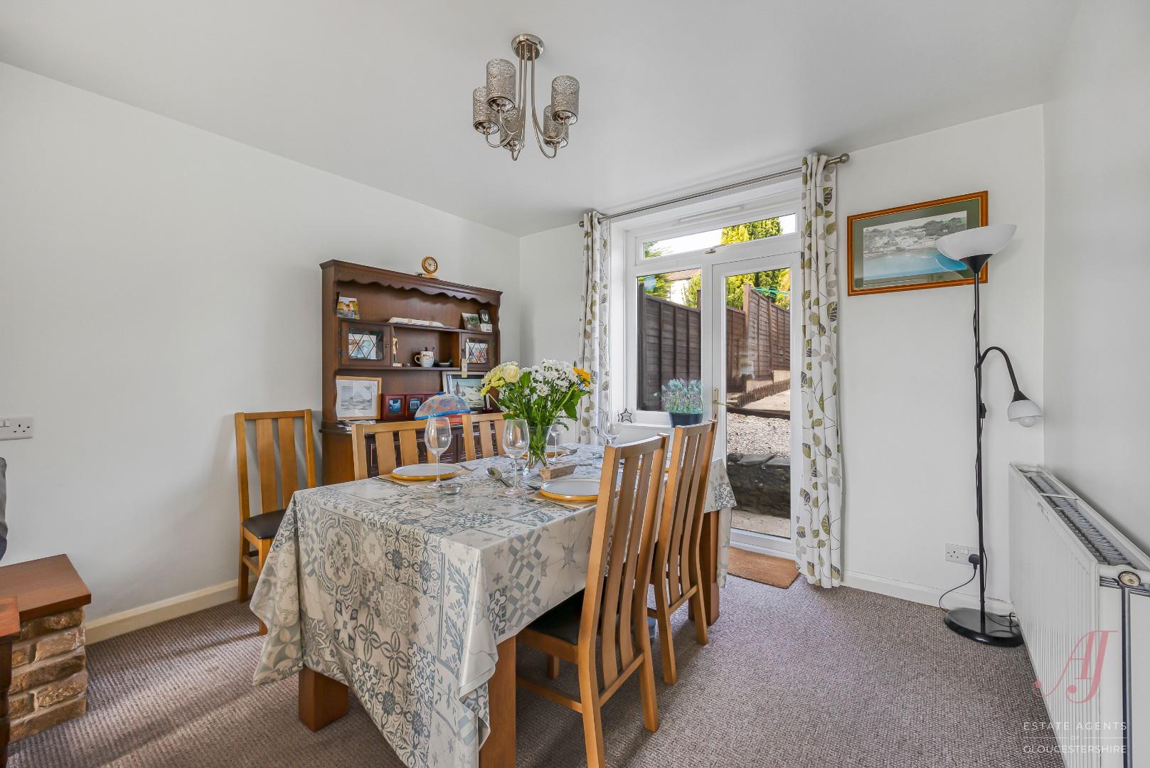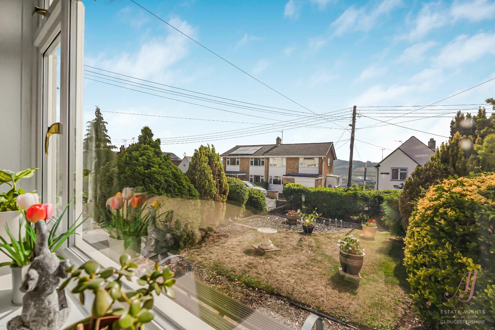 Set in the very popular village of Whiteshill, this family home offers a great location with a large garden perfect for any family or budding gardener. Space for all to enjoy. The property sits on an elevated plot taking full advantage of the views across the valley. Parking on approach along with private driveway providing parking for two cars and a single garage. Well established front garden offering a wealth of planting. Internally entrance porch leads to a good sized hallway with cloaks area. Sitting room having a large picture window providing a wealth of natural light, opening to a dining area with space at ease for a six seater dining table and chairs with door opening to the garden. A modern fitted kitchen provides a great amount of storage along with fitted appliances and views to the garden. To the first floor two double bedrooms and a good sized single room all having great light. Fantastic views to the front and garden views to the rear. Gardens provide a wealth of space with a paved terrace outside both the kitchen and dining area. Steps lead up to a raised sun terrace with pergola and gate leads to a lovely lawned garden with rear gate. Space for all the family to enjoy.