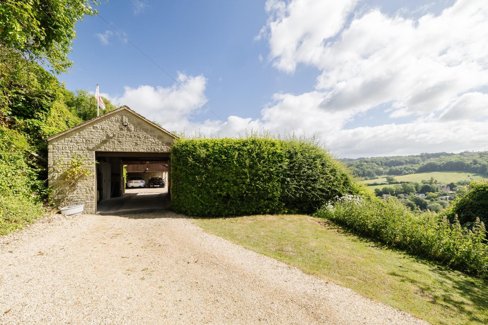 Approach just below Rodborough common is Mount Vernon. A driveway leads to a small gathering of properties, with a track leading to the head of the grounds of Fort William. A wealth of parking complimented by a garage and car ports. Steps lead down to the property. A further driveway below through private gates leads to a chipping driveway and further gates lead into the wonderful grounds of Fort William.
