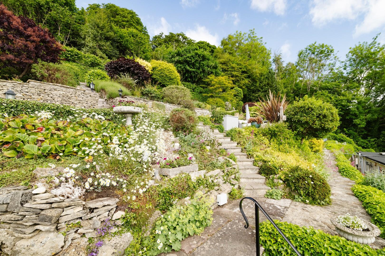 - Stunning tiered Garden, landscaped with stone pathways, vibrant flowerbeds & terraces