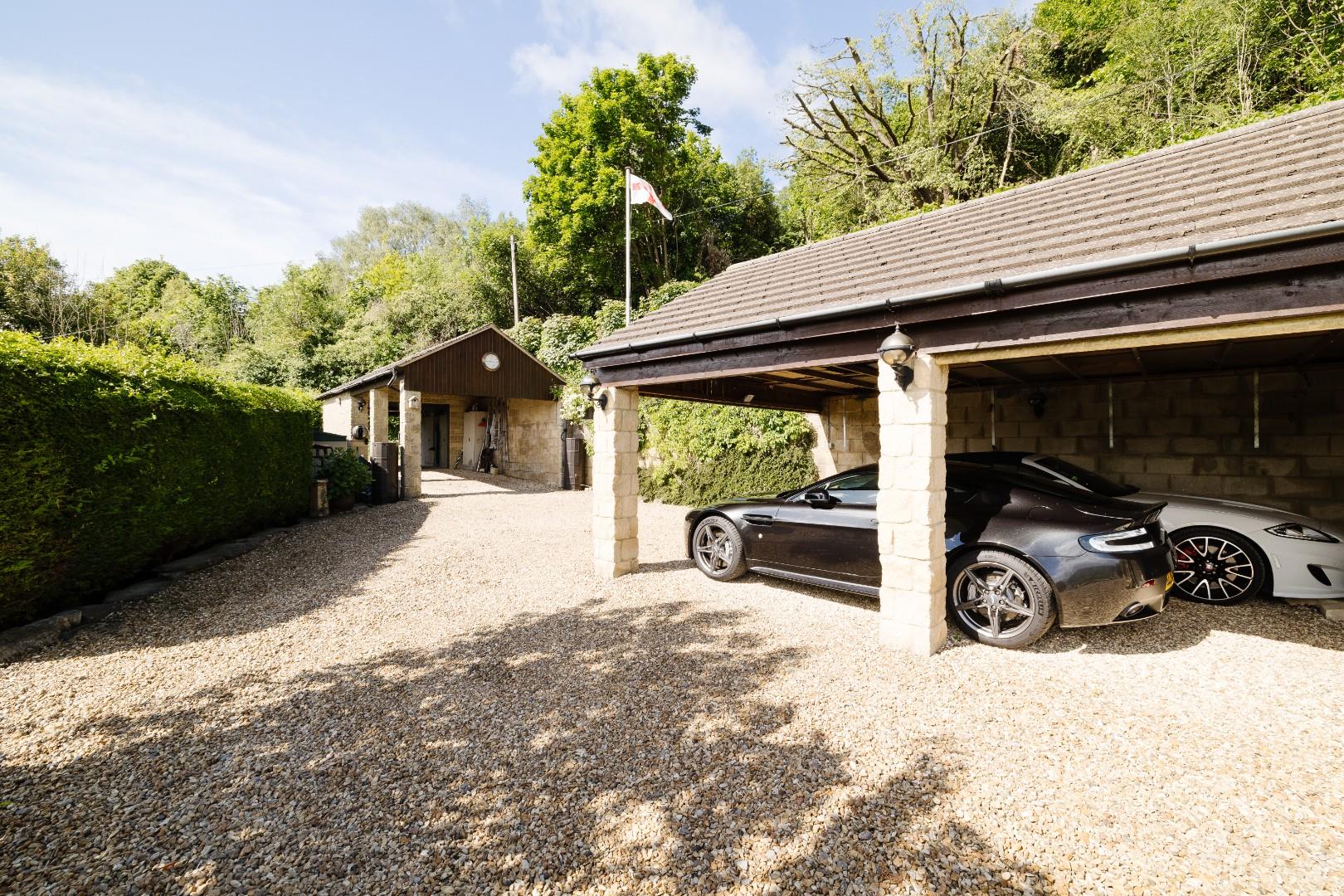 To the head of the grounds a detached double carport and additional garage/car port are discreetly tucked away behind mature planting and accessed via a private drive. The access is owned by National Trust. Further driveway provides additional parking for The Lodge. Our Aerial images showcase the impressive scope of the grounds, woodland edges, lush lawns, and beautifully designed spaces perfect for gardening, entertaining, or simply enjoying the landscape.