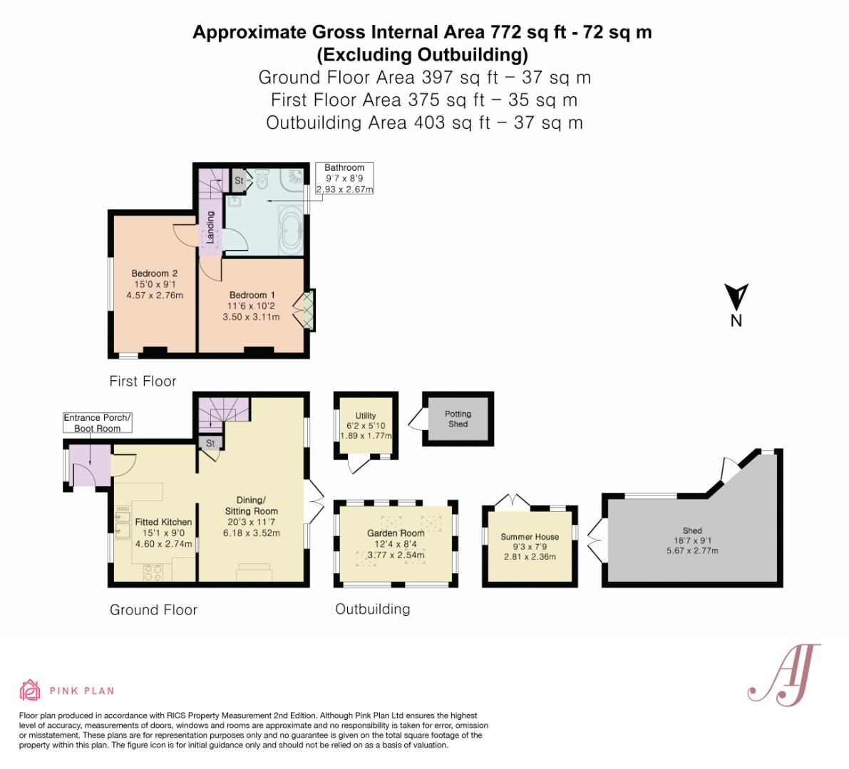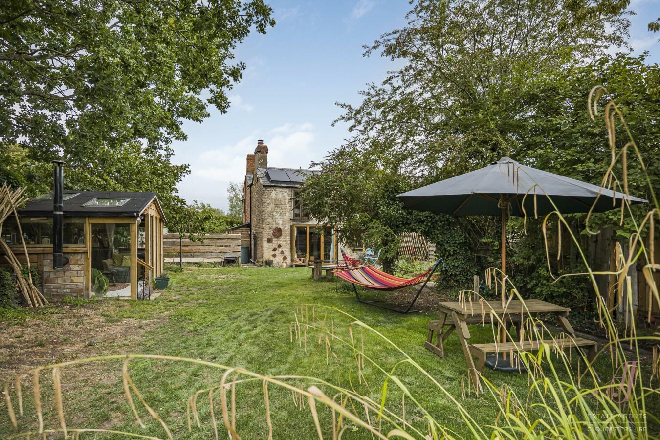 The garden opens out with a selection of mature trees to include fruit-bearing, a large vegetable plot complete with three brick-built compost bins and a greenhouse. A pretty summer house along with a great potting shed and large garden shed/store.