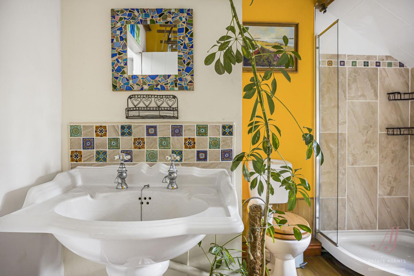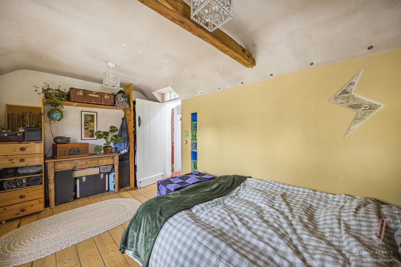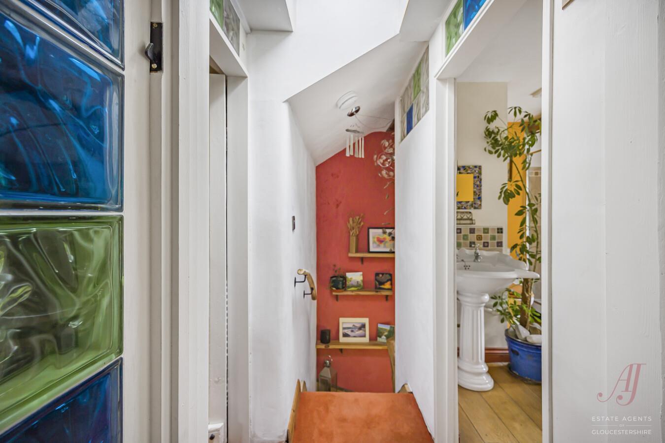 A further double bedroom to the front, having views of gardens to the front and a side window providing a view in the distance to the River Severn. Quirky architectural details, including colourful glass block inserts, add individuality while maintaining a warm & welcoming atmosphere.