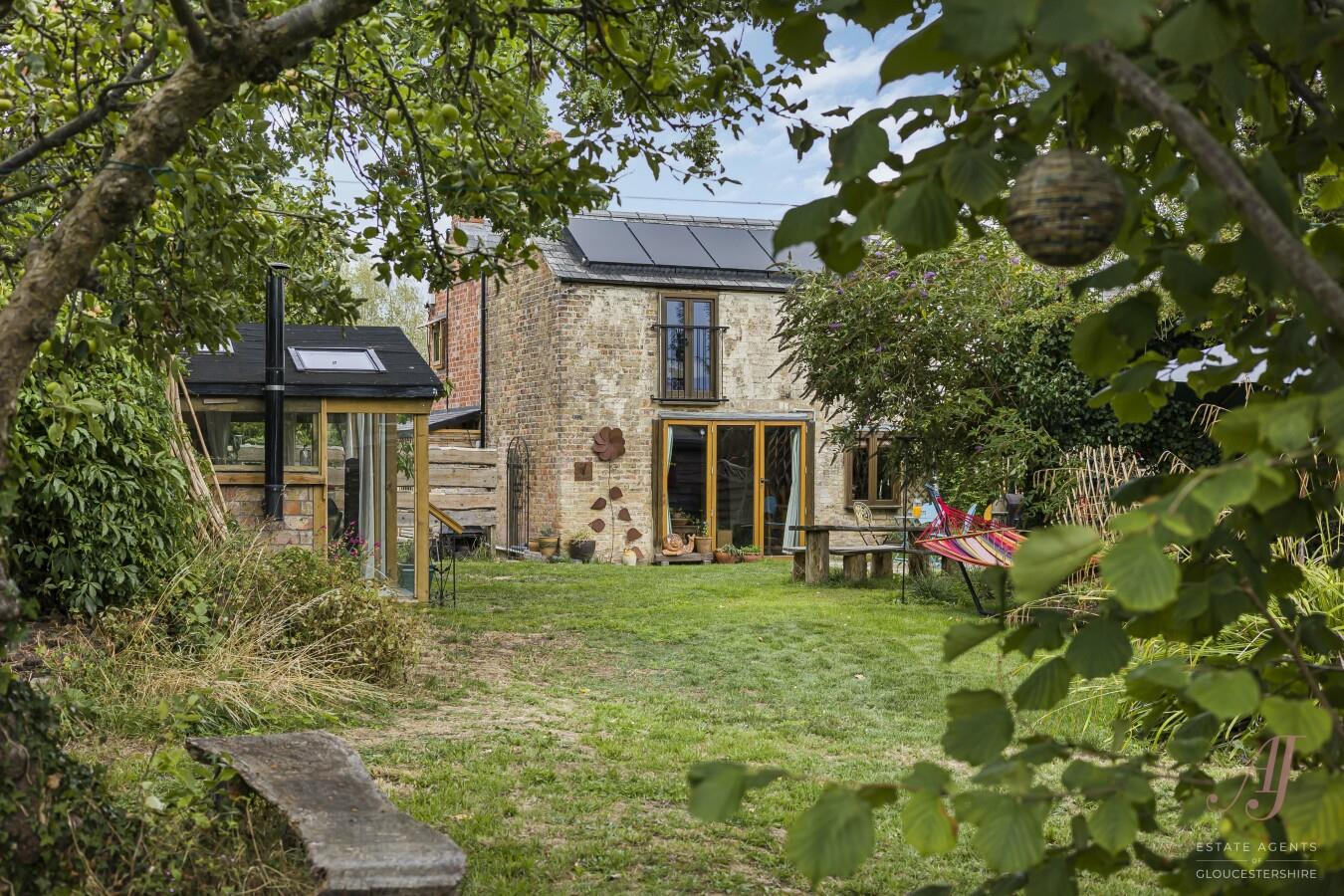 Looking for that rustic charm in a village setting. A beautifully renovated two-bedroom cottage offering a rare combination of character & modern eco-features, & private grounds, situated in a peaceful setting. Thoughtfully updated over the last 14 years to maximise energy efficiency, the home boasts lime-plastered walls, eco-breathable paints, wooden floors with insulation & exceptional roof insulation. Further complimented by an Air source heat pump, solar panels, & an electric car charge, all to ensure low running costs. A welcoming porch/boot room leads to a rustic-style fitted kitchen, a Sitting room with log burner opening to the dining area, Bi-folds open to the garden, and a handcrafted staircase. Upstairs, a four-piece bathroom with a roll top taking centre stage. The main bedroom has a Juliet balcony overlooking the gardens. Bedroom two is equally a double room with views, each offers wooden floors & exposed beams. A garden for all to enjoy including a timber-framed garden room, Utility room, summer house, garden and potting sheds. Raised planters, vegetable beds, wildlife pond, fruit & nut trees. A haven for birds, butterflies, & dragonflies. The chipping driveway accommodates three cars & includes a sheltered bike & log store. Planning permission is granted to almost double the footprint with two extra downstairs rooms & a master suite upstairs. Set in a tranquil location within walking distance of the River Severn, this charming home perfectly blends countryside living with sustainable modern comforts.