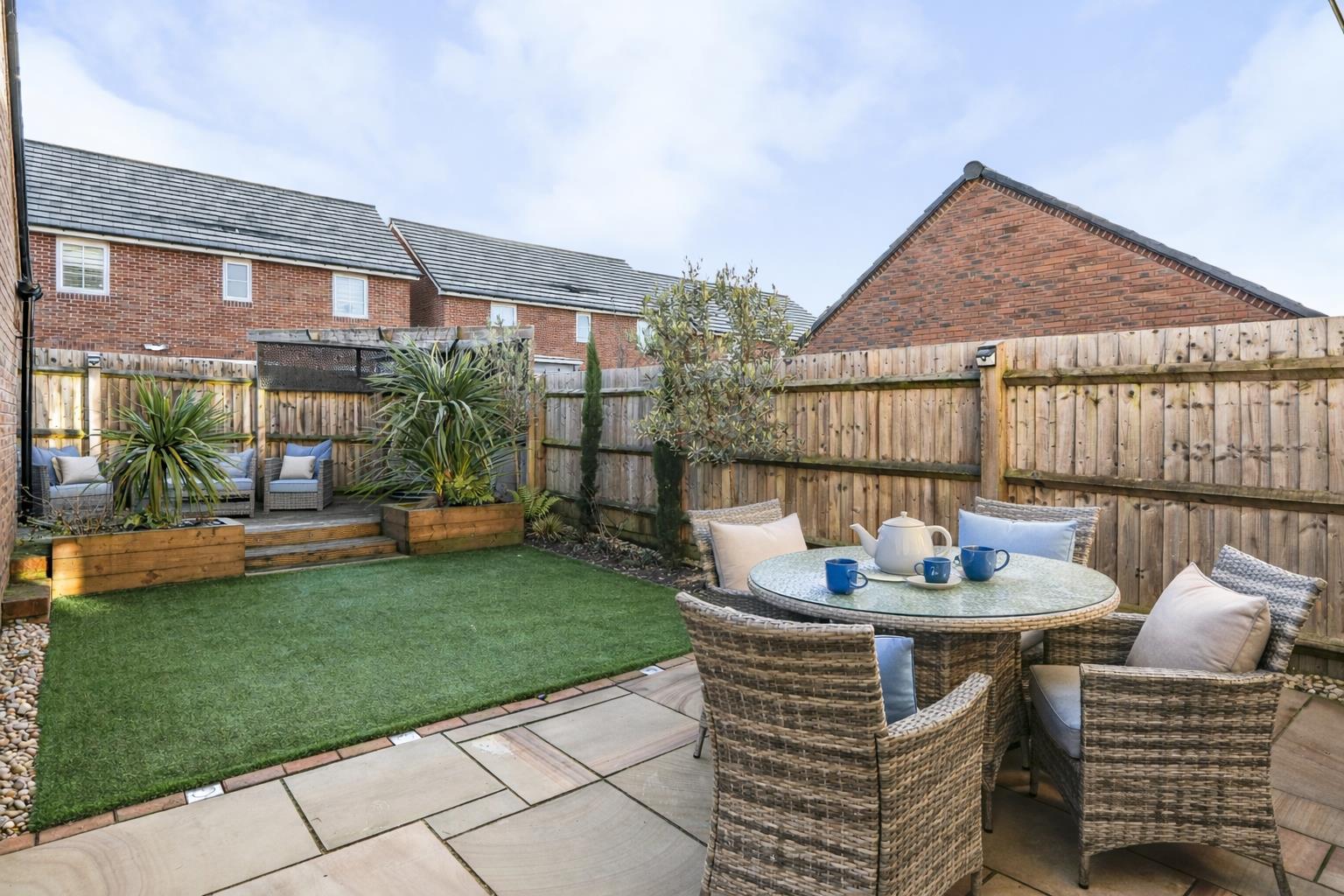 The rear garden is well planned, with a clear flow from the house to the far end.