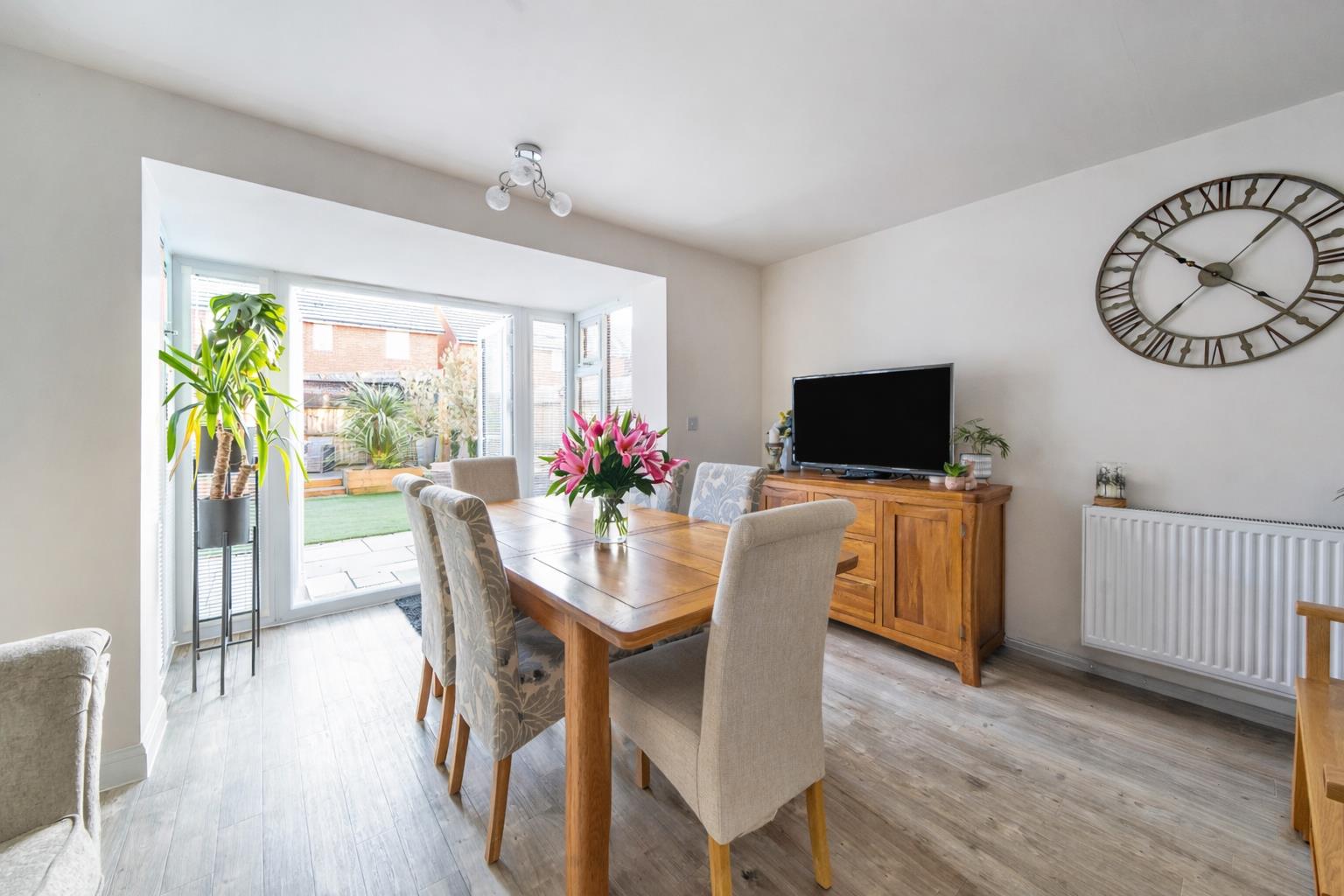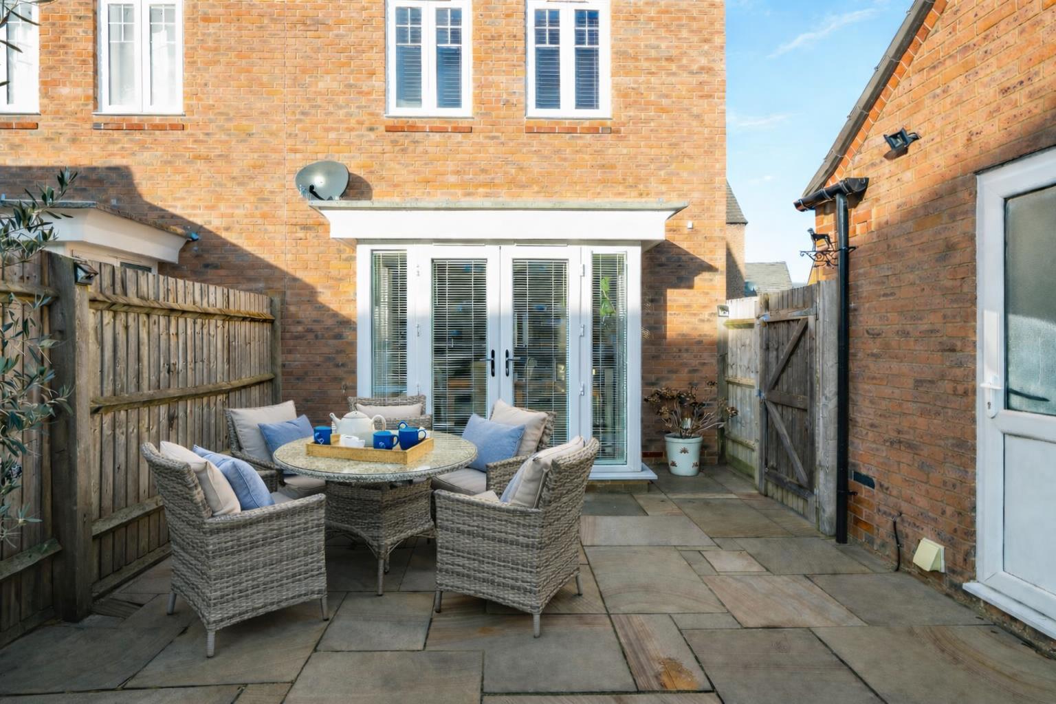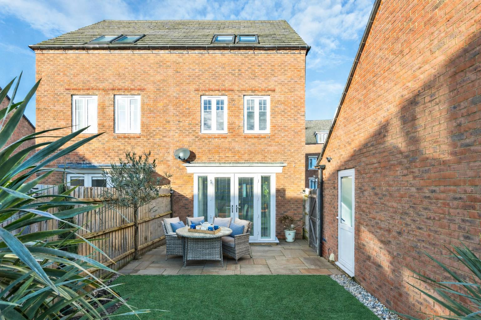A stunning three storey home that is presented beautifully throughout with versatile accommodation over three floors. David Wilson Homes (The Greenwood design). Parking to the side for two cars up to a good sized single garage with gate to the garden. Entrance hall, downstairs cloakroom, utility cupboard, home office/playroom. A lovely fitted kitchen with integral appliances opening to a lovely dining family room with French doors opening to the garden. A great understairs pantry. First floor sitting room or further (4th Bedroom) bedroom. Master bedroom with wall to wall fitted wardrobes and a lovely en-suite shower room. To the second floor two further double bedrooms and a family bathroom. Enclosed by a landscaped garden, paved sun terrace opening to artificial lawn and steps with raised beds and a decked sun terrace. Throughout the garden lights inset provide perfect space for Alfresco dining. Conveniently close to local amenities, schools, and transport links, ensuring that everything you need is within easy reach. This house is not just a place to live; it is a place to call home. With its modern design and thoughtful layout, it presents a wonderful opportunity for anyone looking to enjoy a comfortable and stylish lifestyle. Don’t miss the chance to make this exceptional property your own.