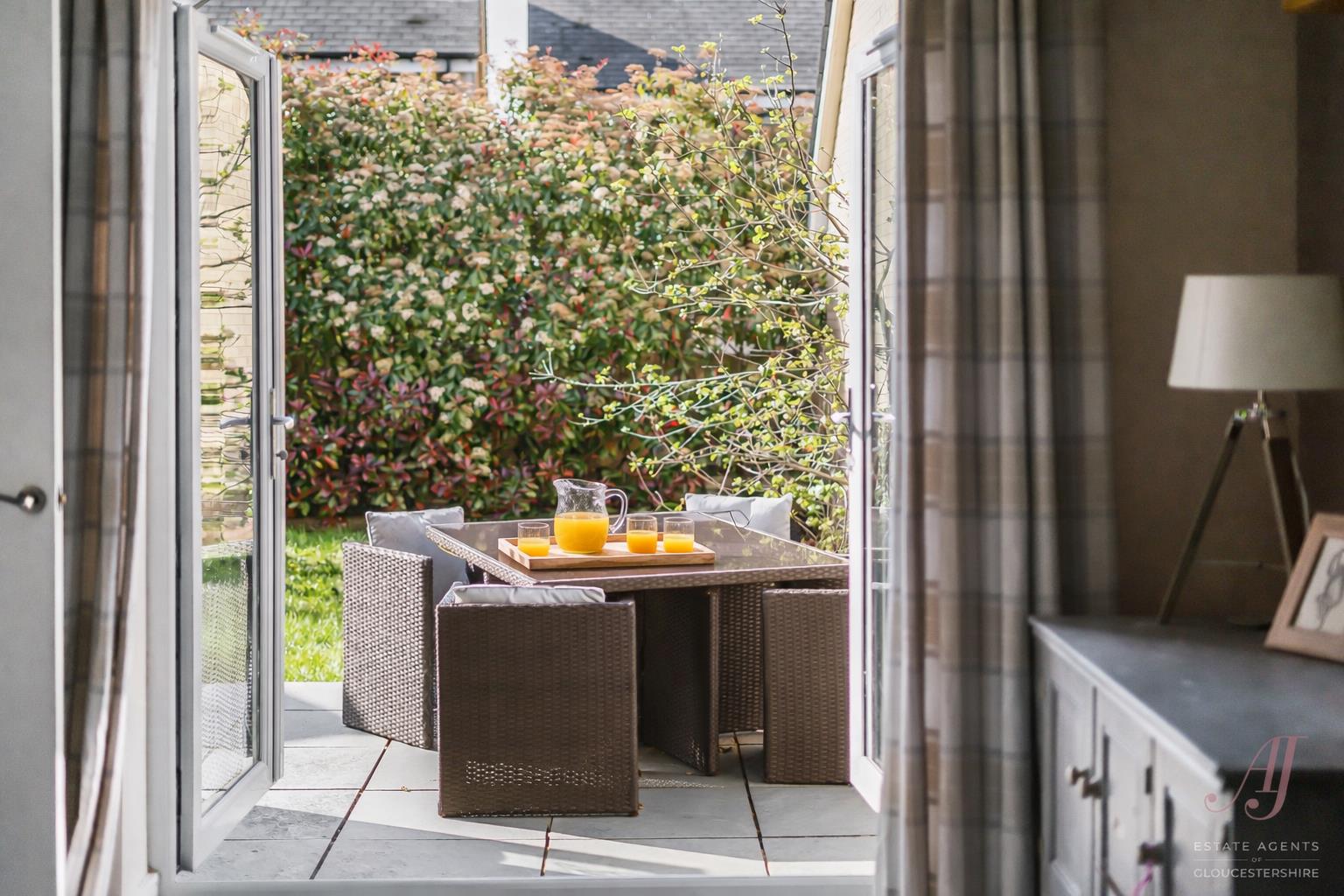 Externally, the rear garden has been thoughtfully arranged to create a practical and well balanced outdoor space. The garden is directly accessed via French doors from both the sitting room and the fitted dining kitchen, creating a seamless connection between inside and out, ideal for day to day living and entertaining.