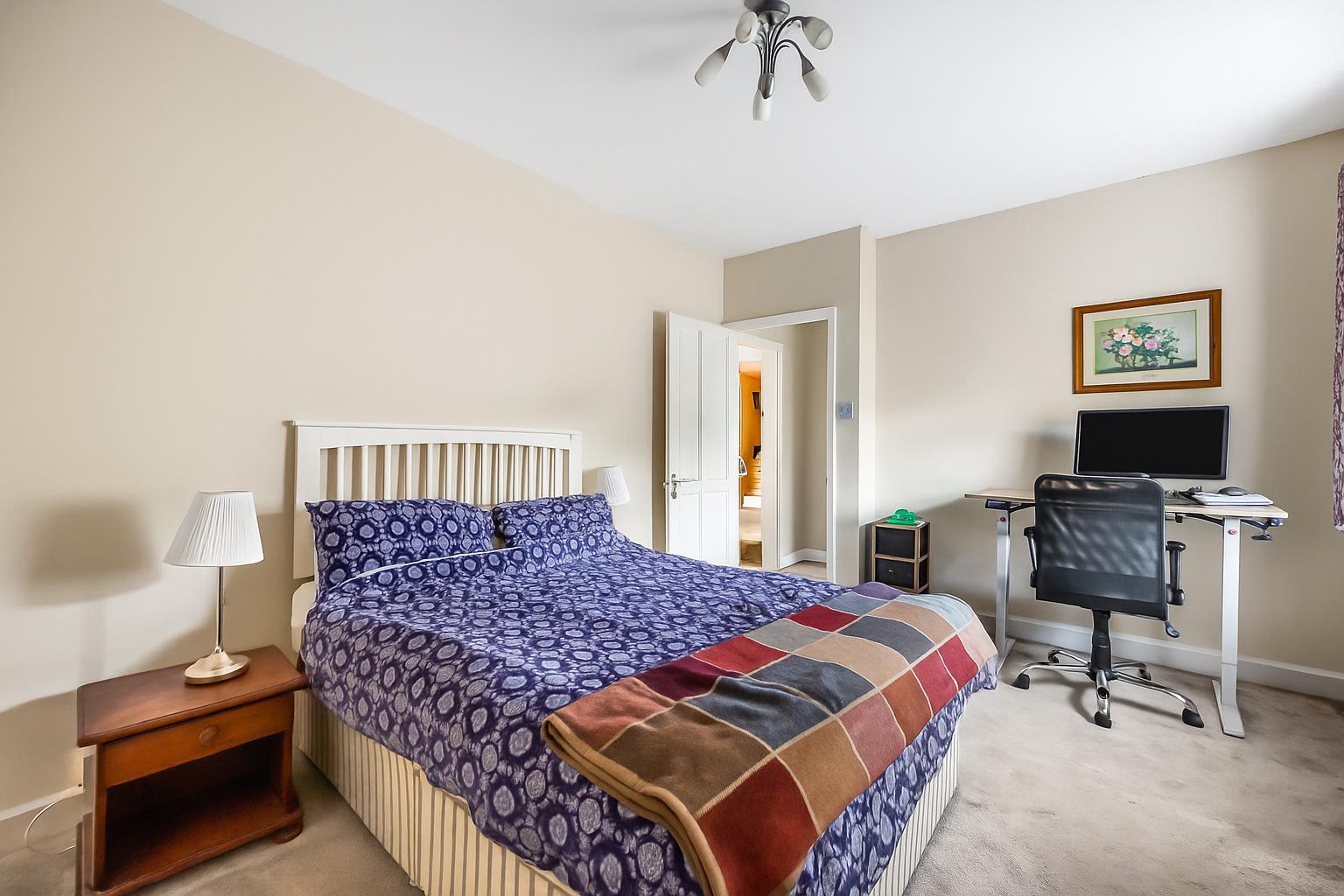 Bedroom two another comfortable double sits to the rear, with space at ease for a double bed, desk and freestanding furniture which makes the room versatile for guests or family. The window looks towards neighbouring period homes and has a wealth of natural light. Bedroom three is a comfortable double with space for a large bed and freestanding furniture. The room has natural light from the window and looks out across the front garden and to the countryside beyond, there is plenty of room for a additional free standing furniture and the current vendor also uses the additional space for a desk which makes the space flexible.