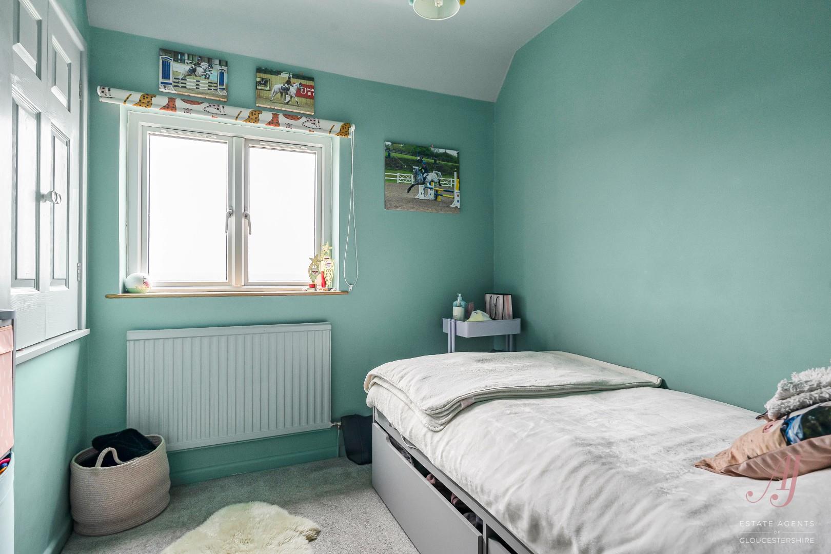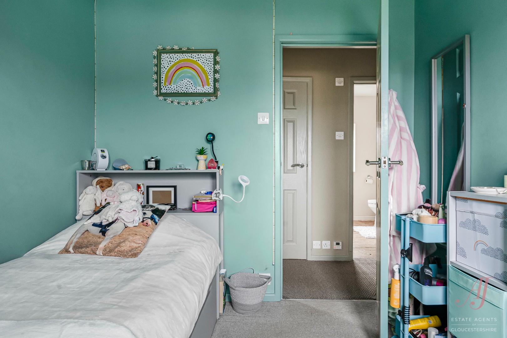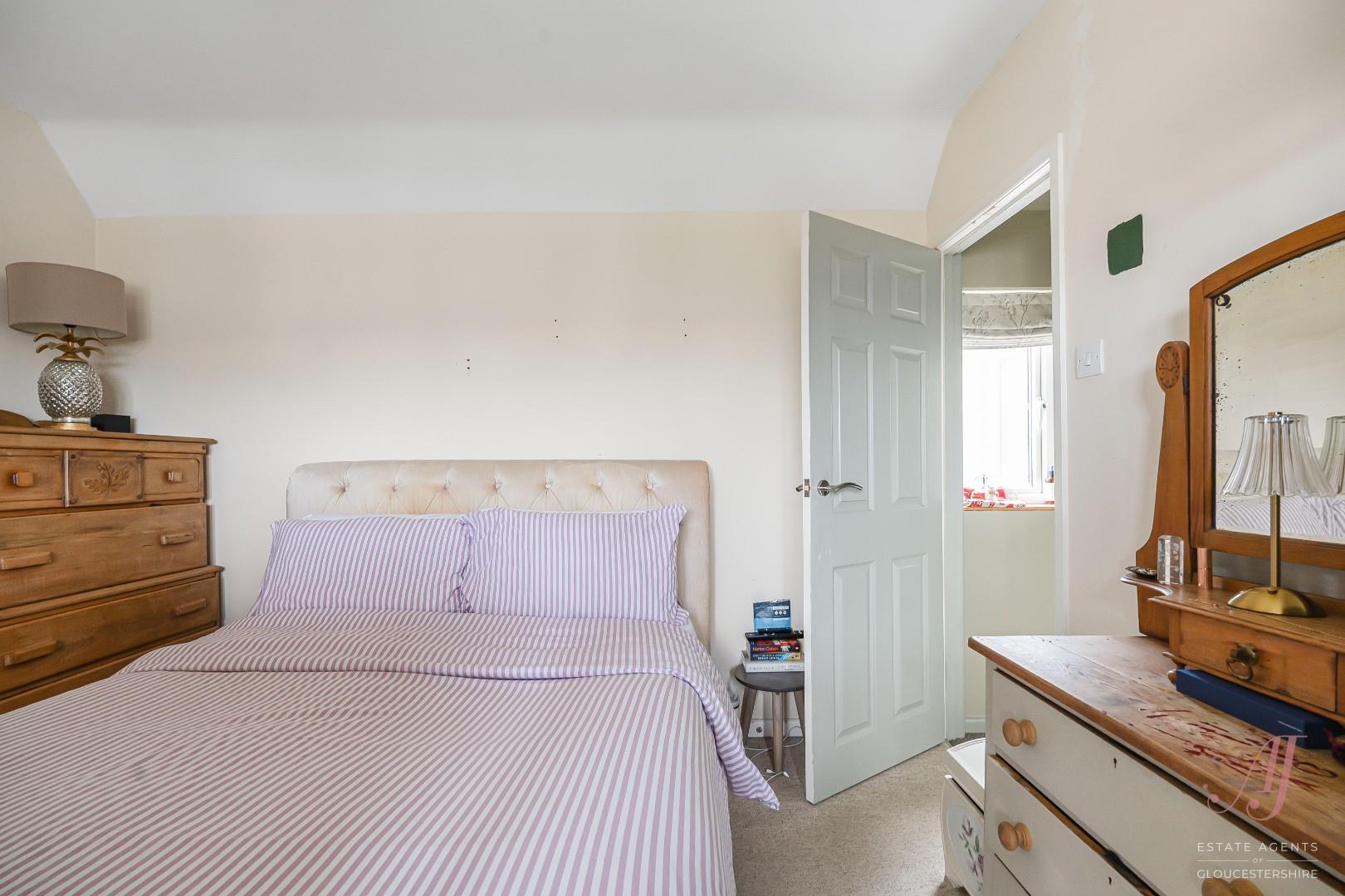 Bedroom two is a generous double room and benefits from far reaching views across neighbouring rooftops and rolling countryside beyond. The elevated position gives a strong sense of space and openness, with changing views throughout the seasons. Bedroom three is a small double which works well as a child’s bedroom, guest room, or home office. The room offers space for a bed and additional furniture, with a window providing natural light and a pleasant outlook.