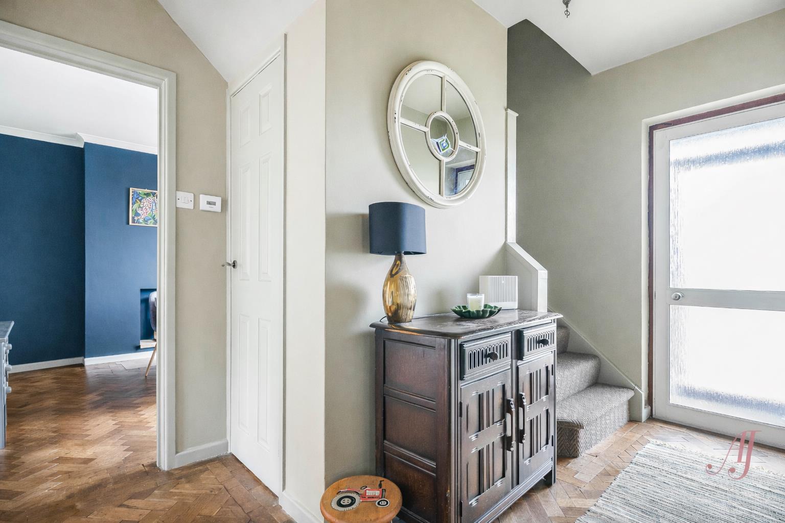 Stairs rise to the first floor landing, with doors to all bedrooms and family bathroom.
