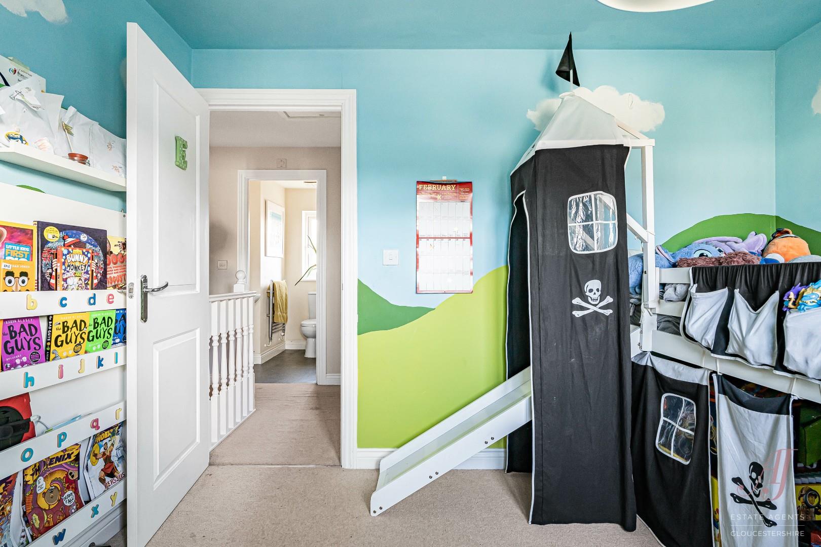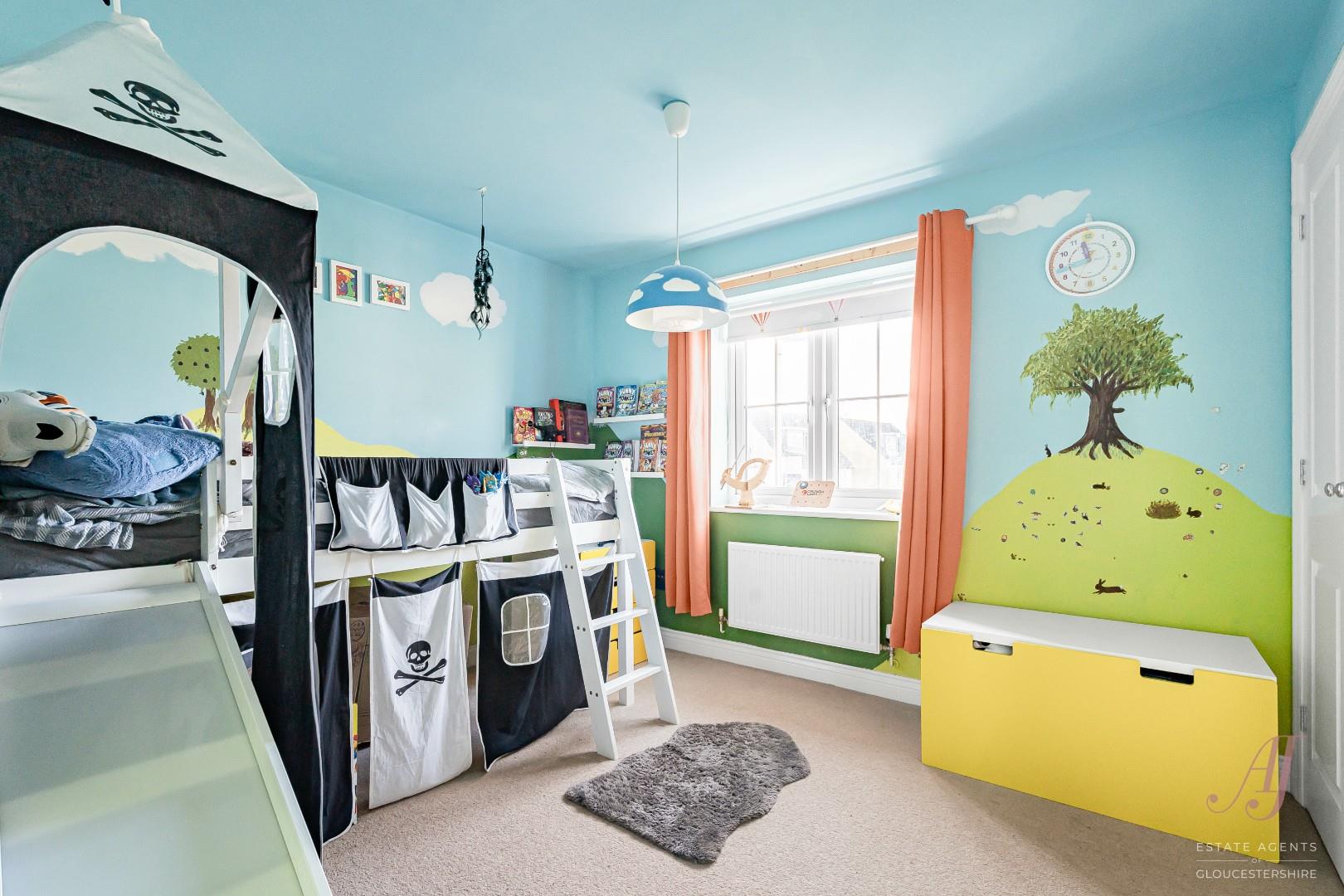 The master bedroom with window overlooking the garden, has space for a double bed and additional furniture. An en suite shower room sits alongside, fitted with a shower enclosure, WC, and wash hand basin. Bedroom two is a comfortable double room, with window to the front ideal guest room or children’s bedroom. Bedroom three also a double and window to the front with built in wardrobe, ideal as a bedroom, nursery, or home office. Bedroom four to the rear looking out to the garden is a small double which can work well as home office or guest room. The accommodation is completed by the family bathroom with a bath, shower over, wash hand basin, and WC.