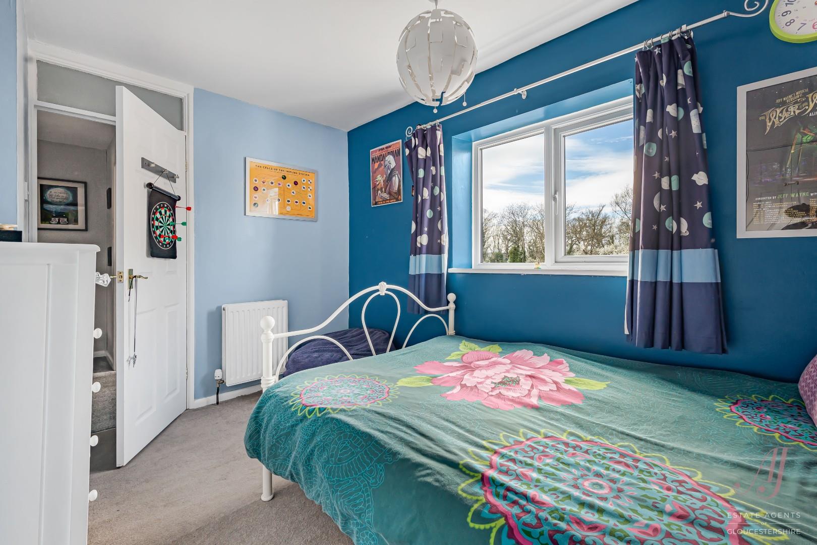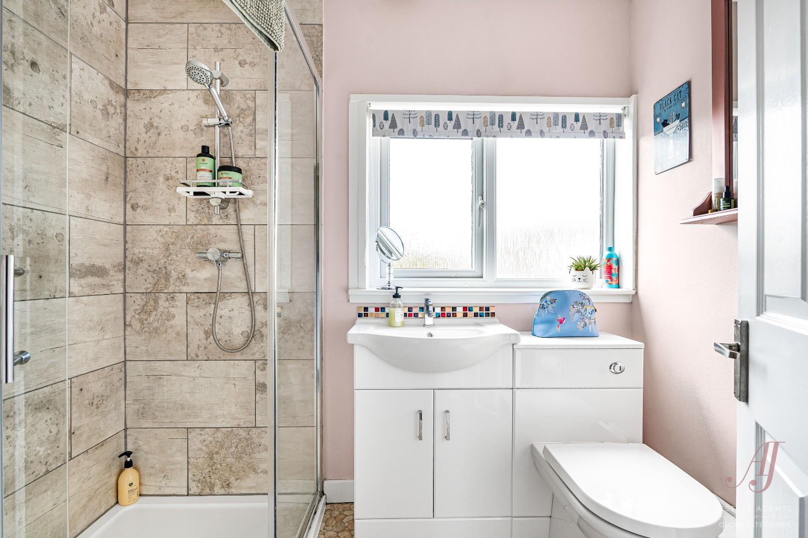 Bedroom one is a generous double room, well presented and offering a comfortable main bedroom space, with views towards the village to the front. Bedroom two is also a good size and can accommodate a double bed if required, enjoying attractive views across the allotments to the rear. Bedroom three is a versatile room, ideal as a single bedroom, nursery or home office, and benefits from a built-in cupboard providing useful storage, also enjoying views towards the village.