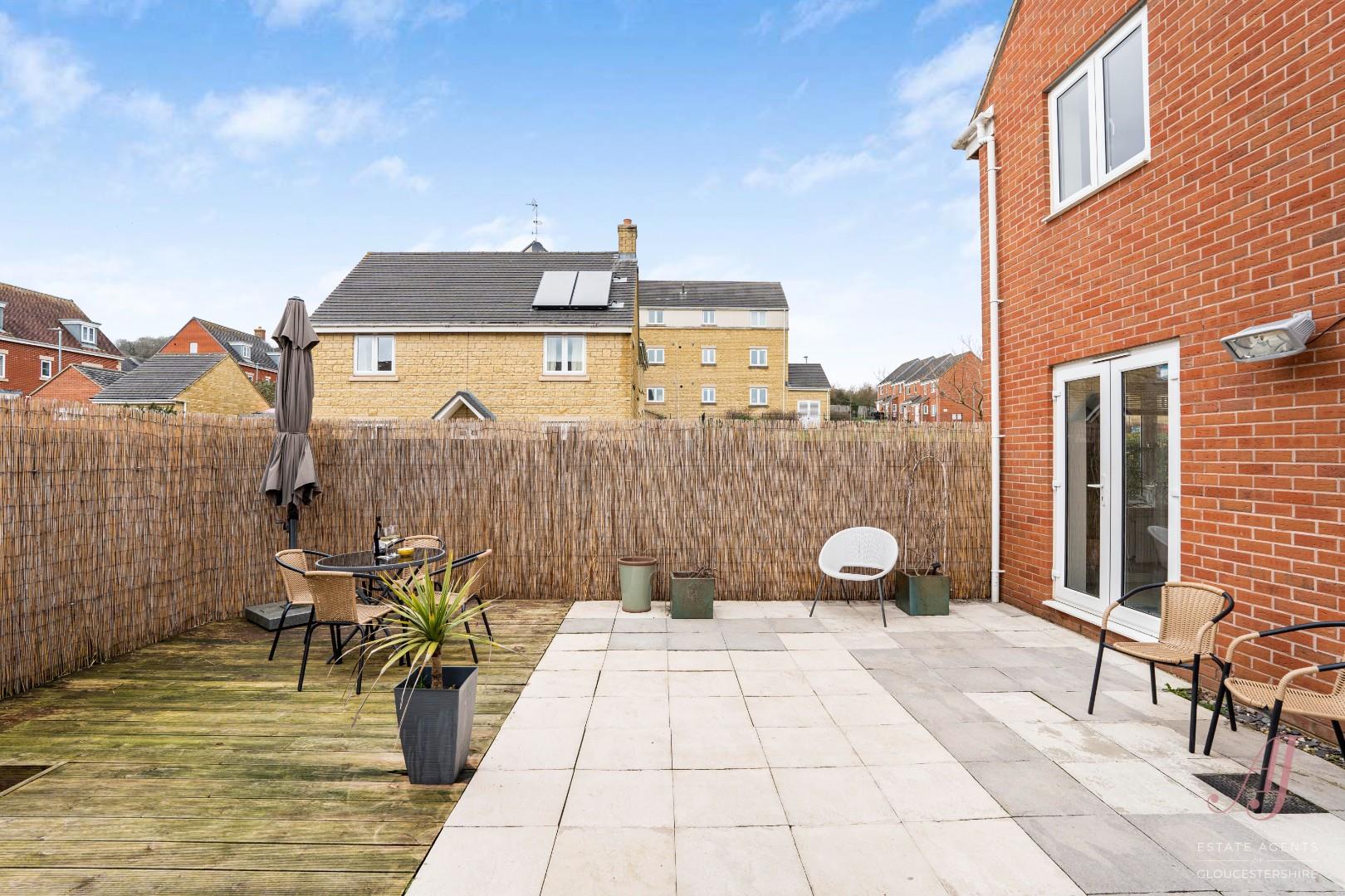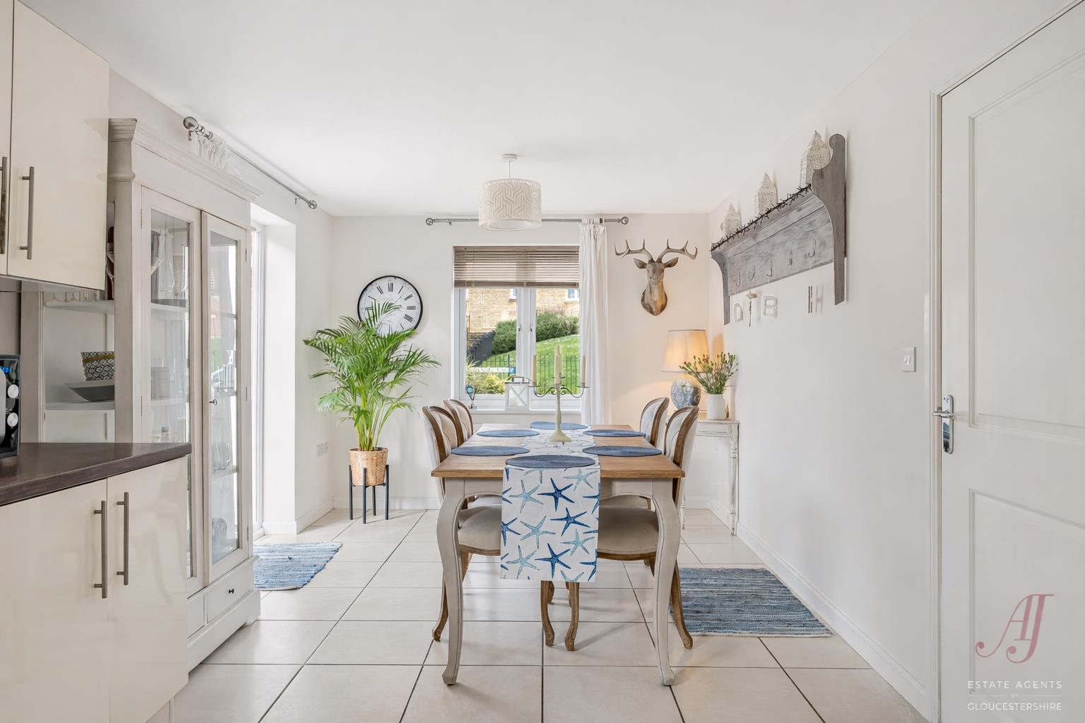 This delightful four bedroom detached family home is set within a small, established development, offering easy access to Stonehouse and Stroud as well as lovely canal walks nearby. Positioned on a corner plot, the property enjoys an enclosed, part walled garden designed for low maintenance, along with a single garage and parking located directly behind. Inside, an entrance hall with tiled flooring leads to a downstairs cloakroom and stairs to the first floor. The sitting room provides a comfortable family space with windows to the front and side, allowing natural light to move through the room. To the rear, a superb fitted dining kitchen forms the heart of the home, offering a range of base and wall mounted cabinets, garden outlook and dual aspect windows. There is clear space for an eight seater dining table, while French doors open onto the garden, creating an easy indoor and outdoor flow ideal for everyday living and summer entertaining, completed by a utility room and door to outside. Upstairs, the master bedroom benefits from free standing wardrobes, views to the garden and an en suite shower room. Three further double bedrooms are well proportioned, some enjoying dual aspect windows, and are served by a family bathroom. The garden also enjoys distant views towards Selsley. VIEWERS MUST BE IN A POSITION TO PROCEED
