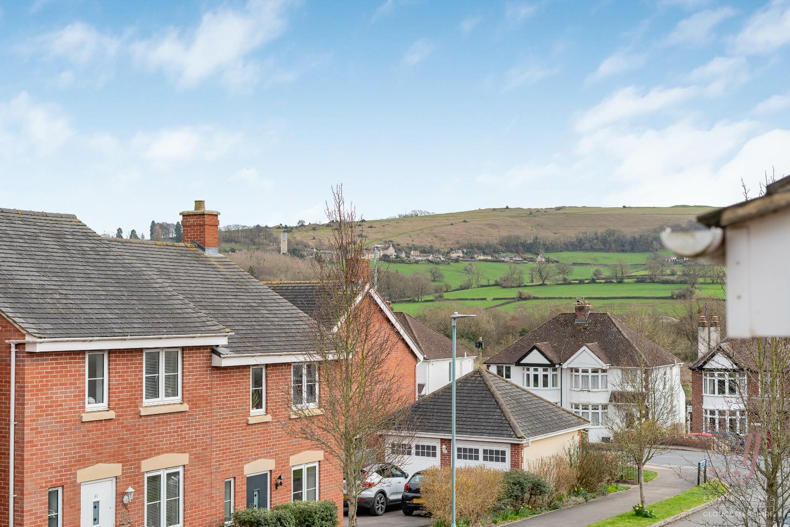 The garden enjoys a pleasant outlook back towards the property with distant views towards Selsley, adding to the sense of openness. The development also benefits from a nearby communal green and play area, providing further outdoor space close by.