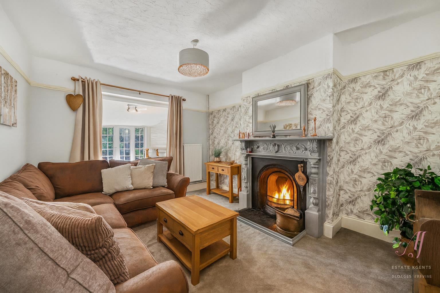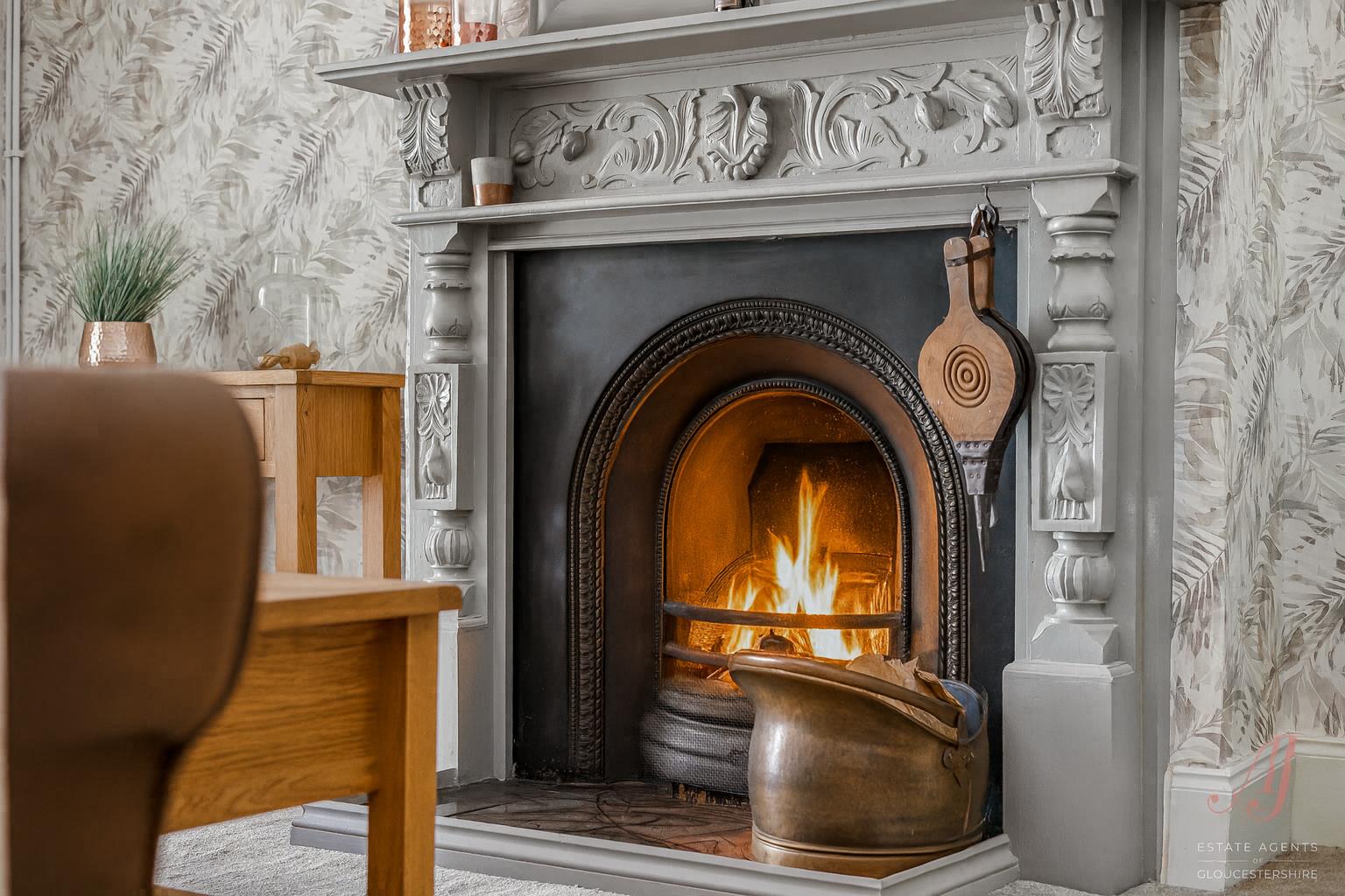 The sitting room provides a welcoming second reception perfect for family gatherings, whilst providing that cosy feel with a period fireplace and mantel and open fire inset. French doors flowing at ease into into the garden room.