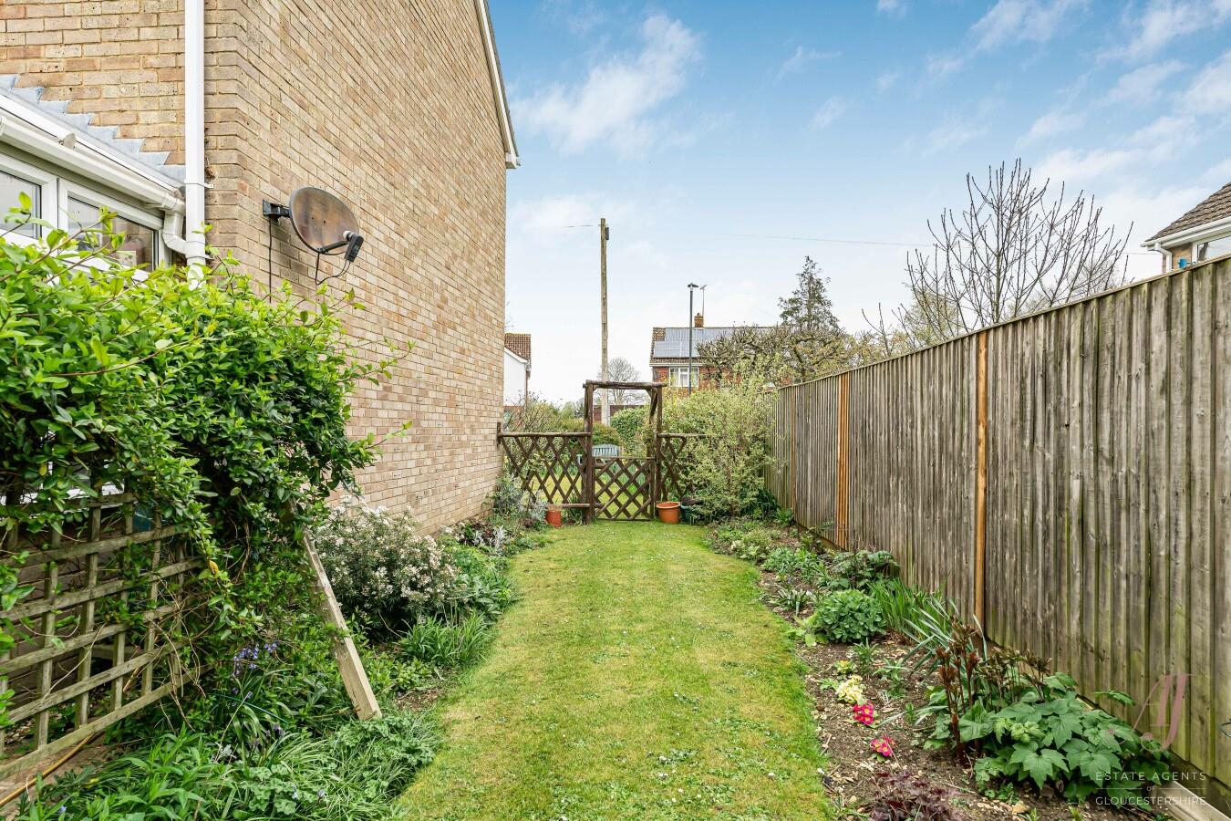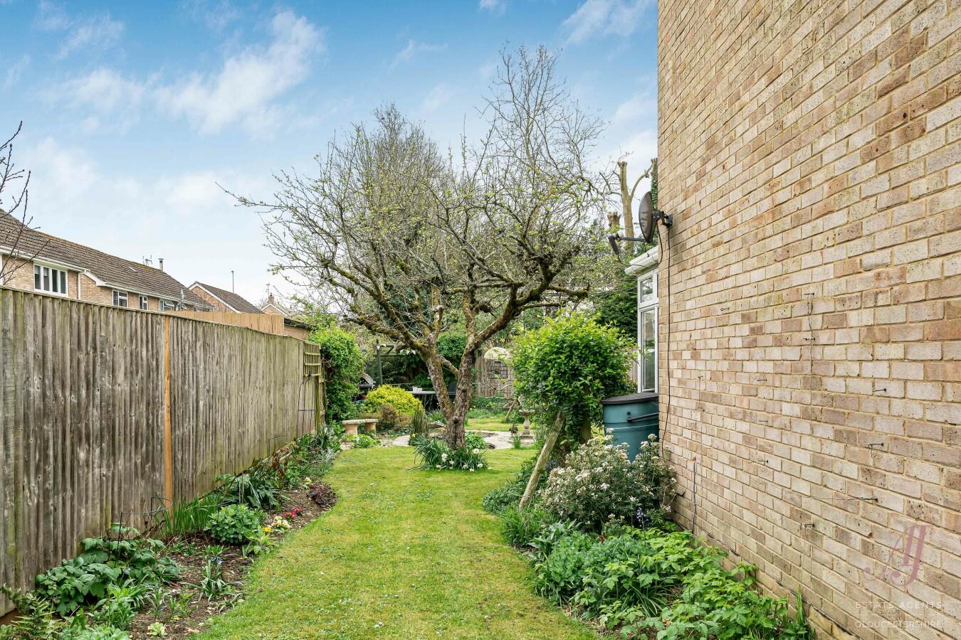 The garden continues to both sides of the property, offering further areas of planting and useful space, enhancing the overall feel of a well-balanced and established plot. The garden is enclosed and secure, with gated access to both sides.