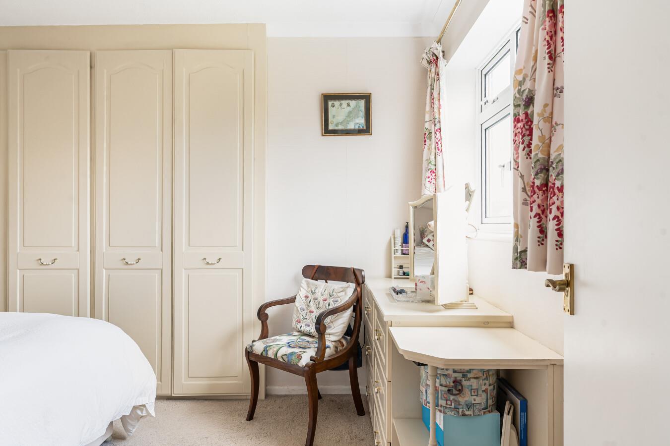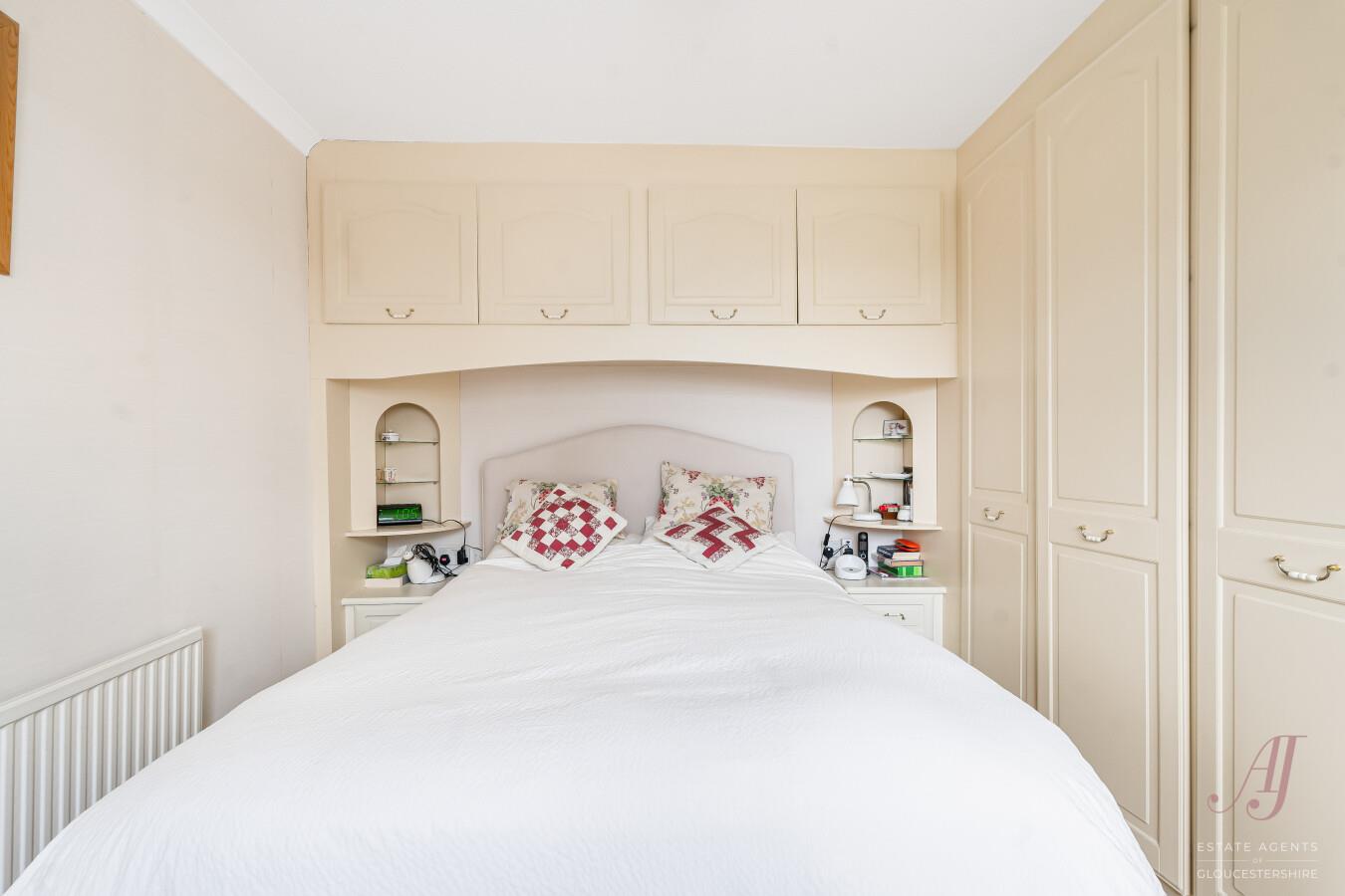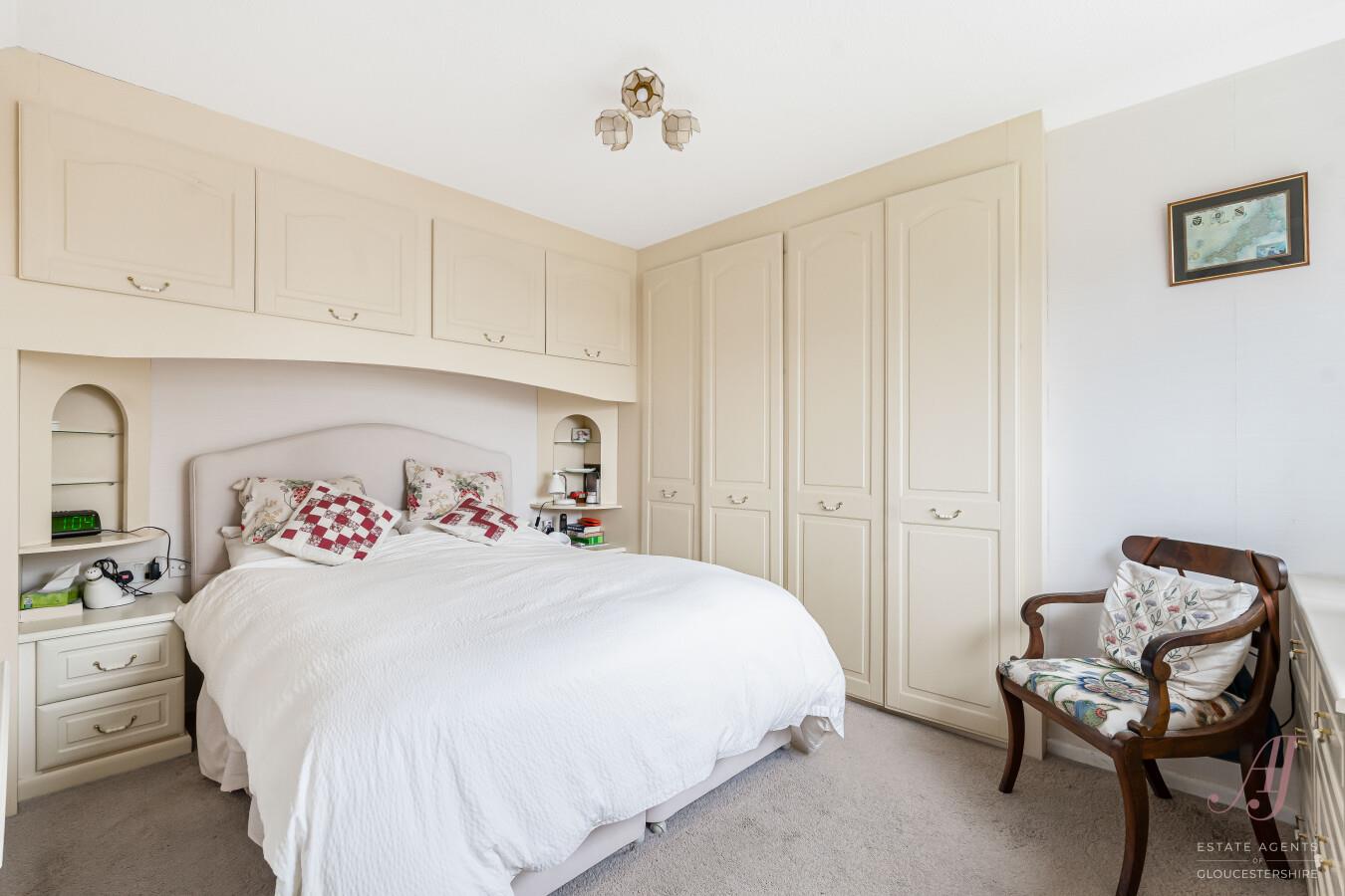 Bedroom one is positioned to the front and benefits from extensive built in wardrobes and storage, including fitted cabinets over the bed. The room enjoys an outlook over the front garden and is filled with a wealth of natural light.