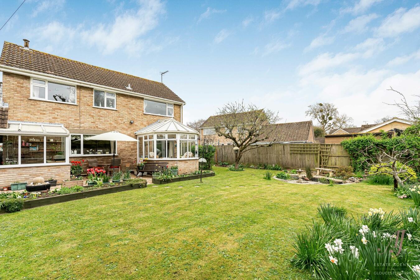 A well-cared-for four-bedroom detached family home, set in the heart of Frampton on Severn, one of the area’s most sought-after village locations. Owned and enjoyed by the same family for over 30 years, the property offers well-balanced and flexible accommodation. The ground floor provides three reception rooms, offering versatile accommodation to suit a range of family needs. This includes a sitting room to the front opening into a bright conservatory, a separate dining room with potential to open into the kitchen, a fitted kitchen with pantry and boiler cupboard, along with a useful utility room and rear access. Upstairs, there are three double bedrooms and a single bedroom, along with a family bathroom, while a downstairs shower room adds further convenience for day-to-day living. Outside, the property enjoys a corner position with a generous and established rear garden, mainly laid to lawn with well-stocked borders, a pond, greenhouse, raised beds and seating areas, along with gated side access. There is also a garage with loft storage above, a workshop to the rear, and a carport providing additional covered space. To the front, a lawned garden and driveway offer parking with ease for four to five vehicles. A well-balanced family home in a popular village setting, with walks on the doorstep and easy access to the M5, Stonehouse, Gloucester and Stroud. VIEWINGS ARE STRICTLY FOR BUYERS IN A POSITION TO PROCEED OR ALREADY ON THE MARKET